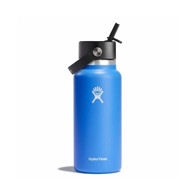 A 32 oz Wide Mouth water bottle with our leakproof Flex Straw Cap - easy to fill, easy to drink. Open it up, add your ice, and flip to sip. The insulated stainless steel keeps it cold for up to 24 hours.