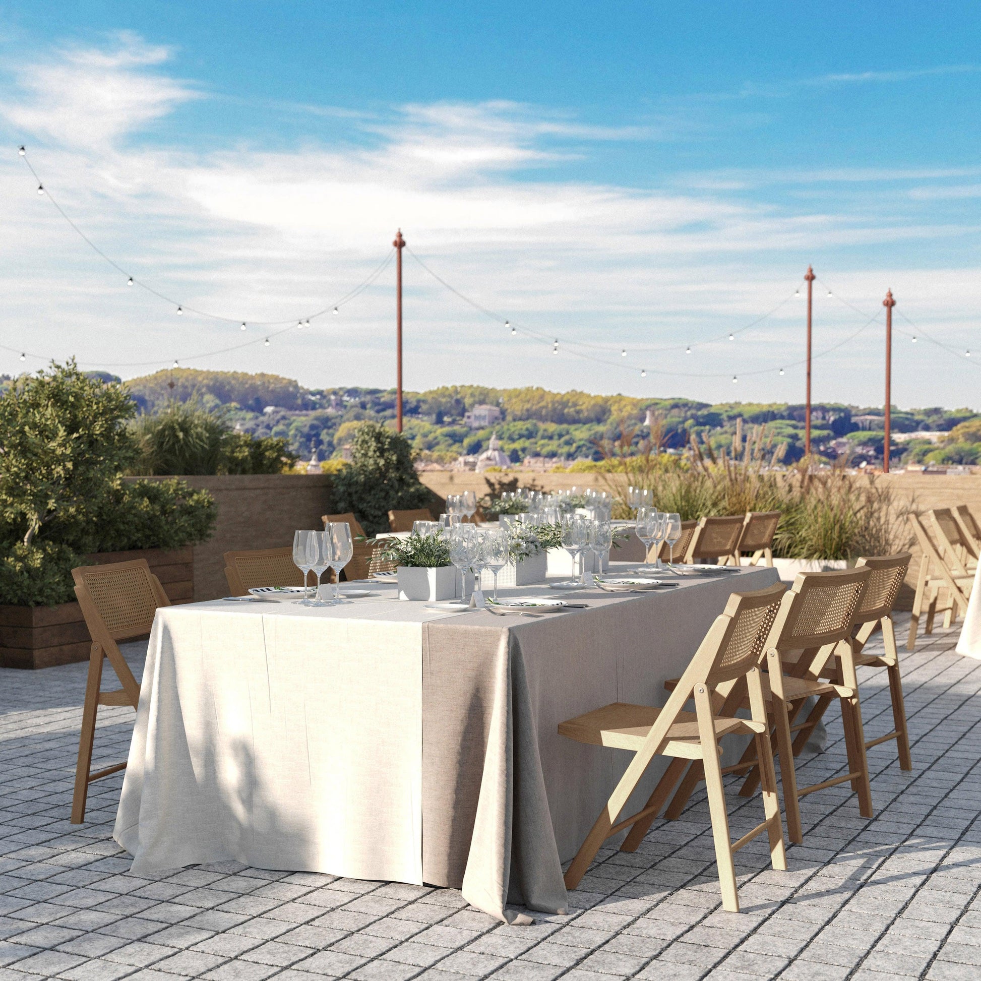 Add a touch of modern elegance to your event or living space with this Set of 2 Cane Rattan Folding Chairs. With their solid wood frames and seats, complemented by a breathable cane rattan backing, these chairs not only offer superior comfort but also integrate seamlessly with any decor style. Compact and lightweight, they fold easily for storage or transport, making them an ideal solution for extra seating at indoor events, barbecues, and more.