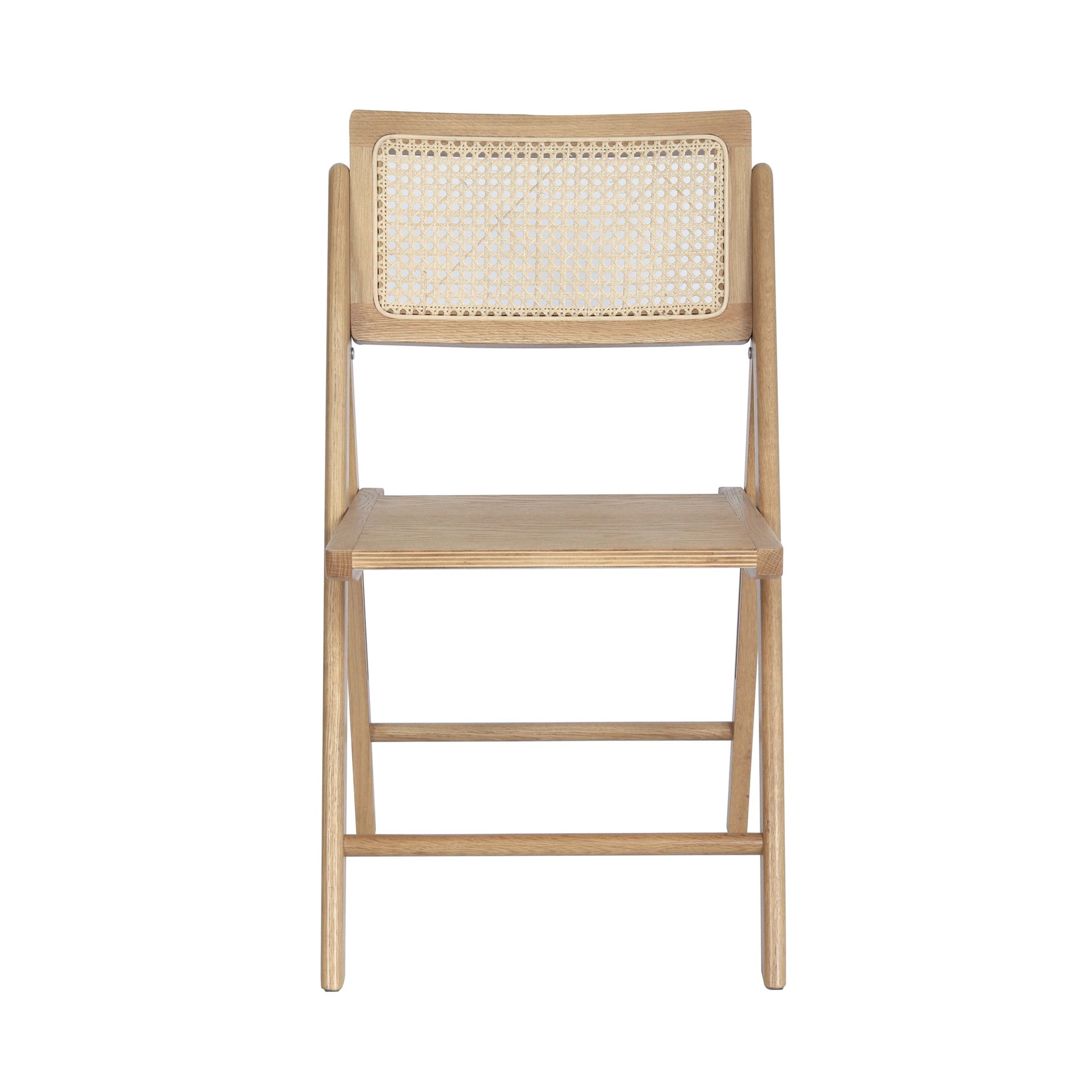 Galene Set of 2 Cane Rattan Folding Chairs with Solid Wood Frame and Seat and Ventilated Back, Perfect for Events or Additional Seating