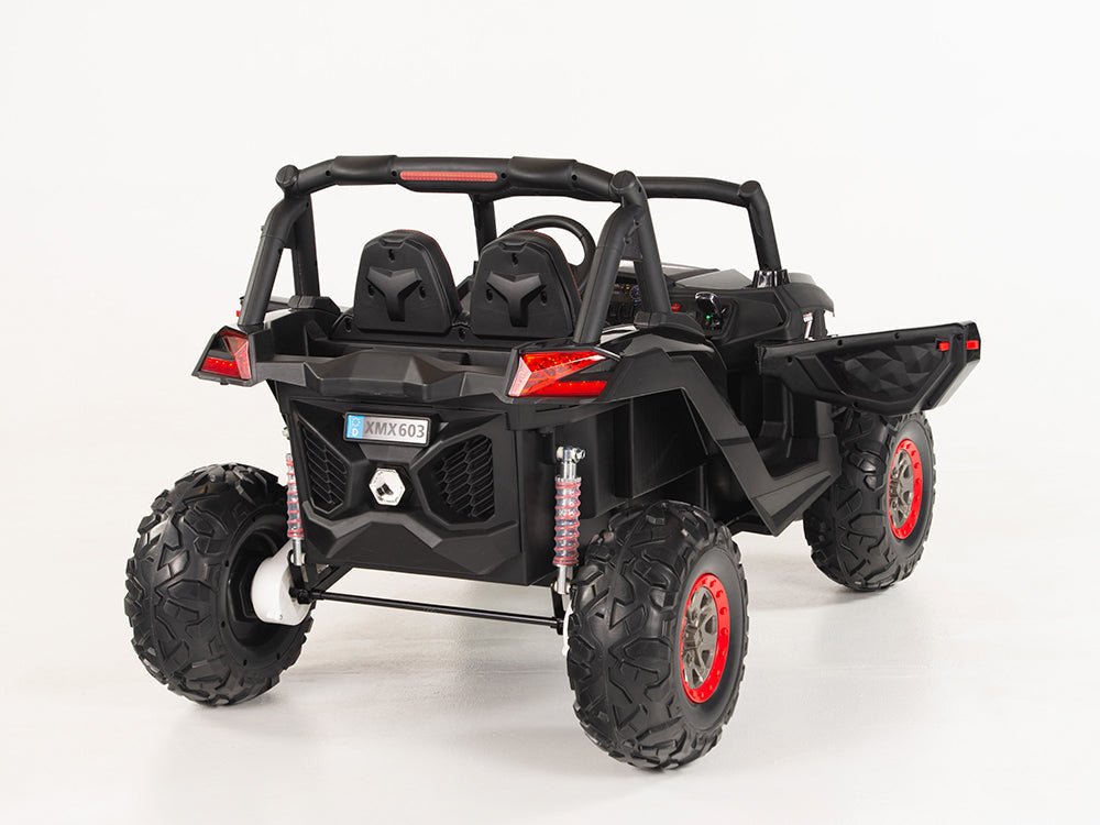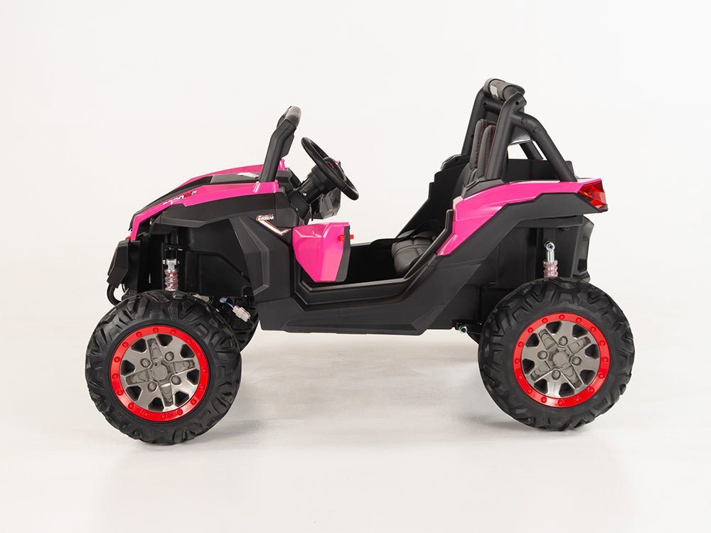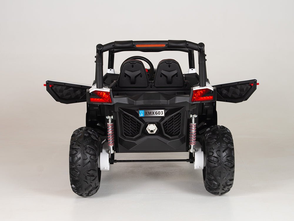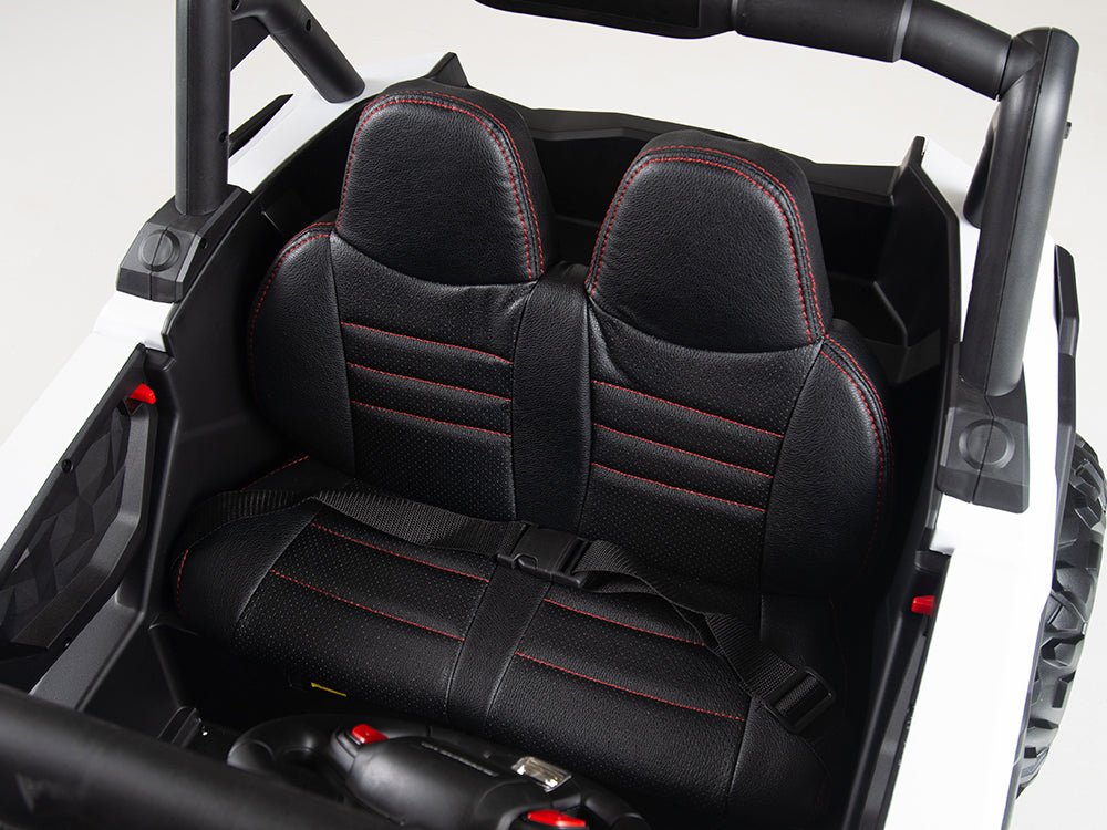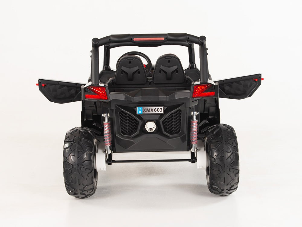 Crafted with the highest quality materials and design, the Magic Cars 2 Seater ATV Ride On UTV Quad Electric Dune Buggy is a perfect way to inspire children to dream big and develop a strong work ethic. This scaled down version of a real Quad UTV Truck, complete with real working doors and (4) motors, will provide your child with years of exciting and educational playtime. As seen on Nickelodeon TV, this ride on vehicle is scientifically proven to be a valuable tool for young minds to learn by doing. Start your child's journey towards success with the Magic Cars 2 Seater ATV Buggy with leather seat.