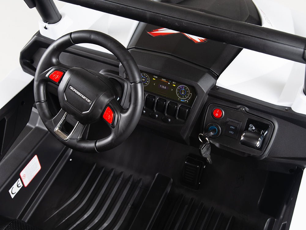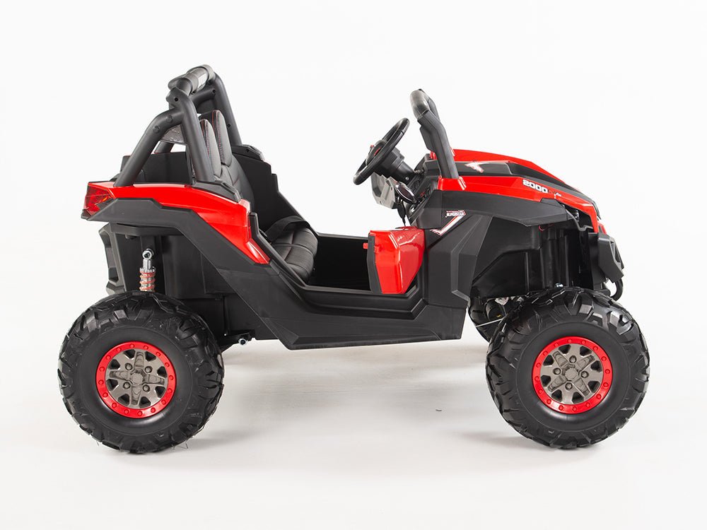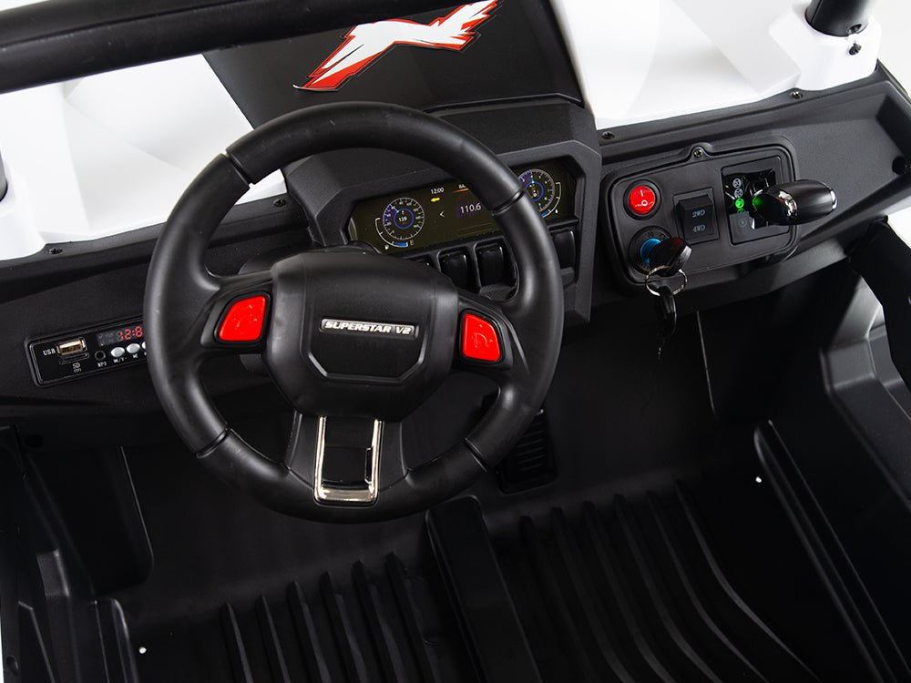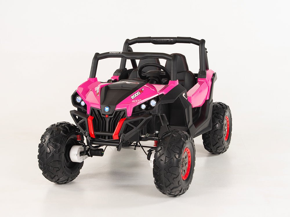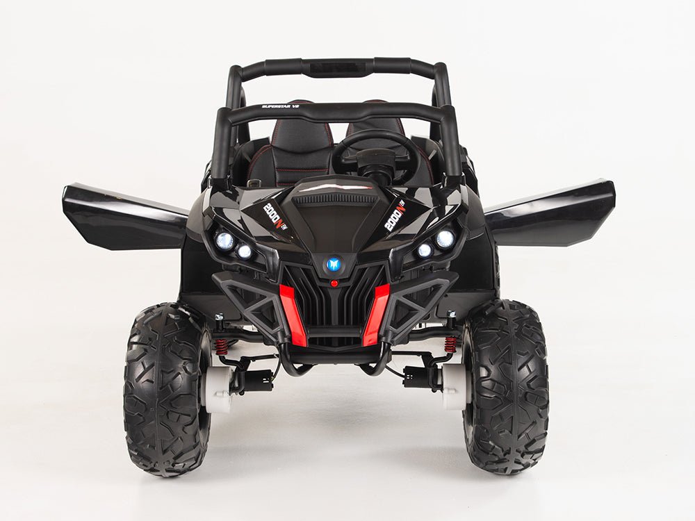 Crafted with the highest quality materials and design, the Magic Cars 2 Seater ATV Ride On UTV Quad Electric Dune Buggy is a perfect way to inspire children to dream big and develop a strong work ethic. This scaled down version of a real Quad UTV Truck, complete with real working doors and (4) motors, will provide your child with years of exciting and educational playtime. As seen on Nickelodeon TV, this ride on vehicle is scientifically proven to be a valuable tool for young minds to learn by doing. Start your child's journey towards success with the Magic Cars 2 Seater ATV Buggy with leather seat.