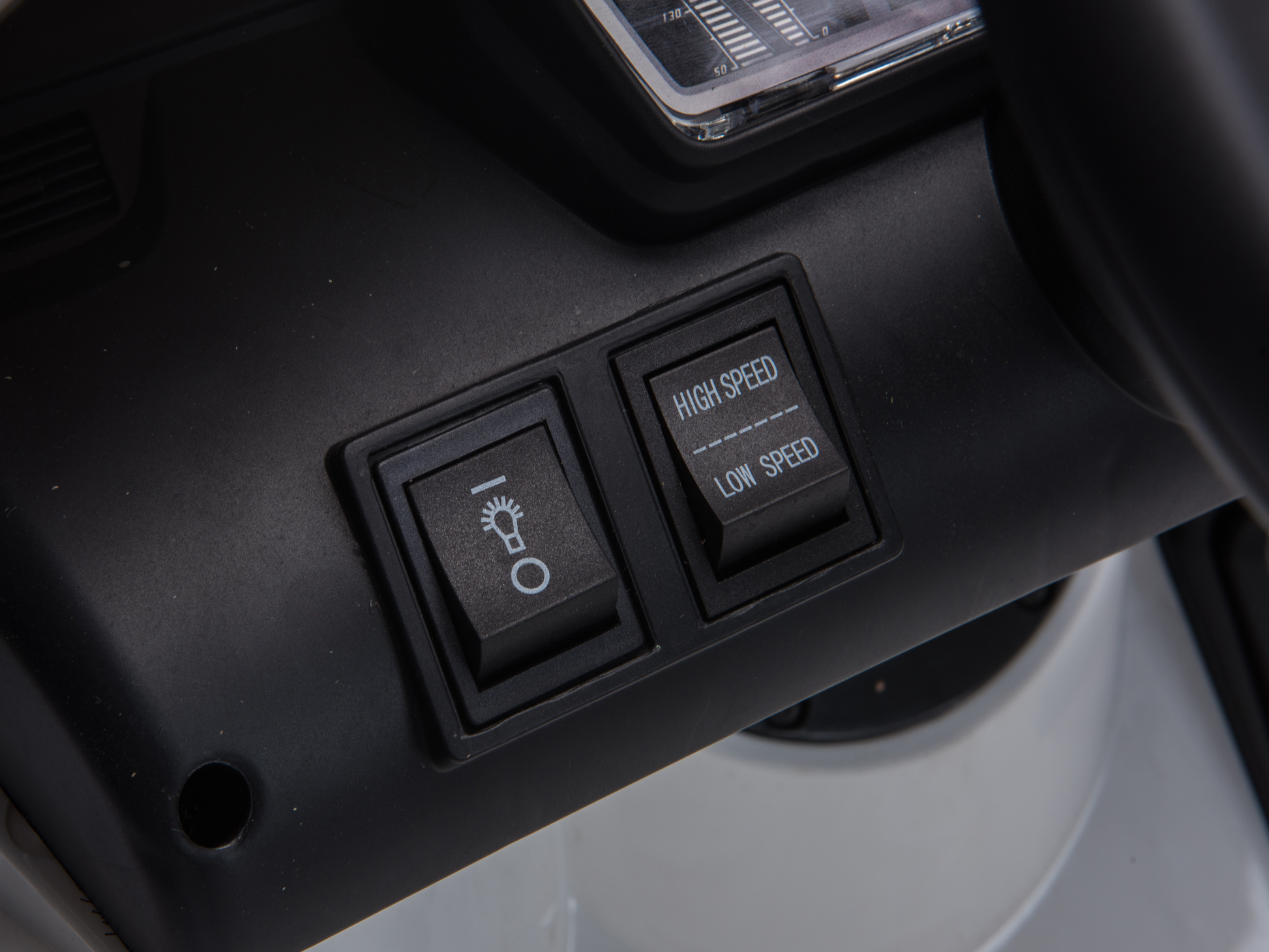 Magic Cars* offers a unique double exhaust design with two 24 Volt motors that can easily conquer driveways and inclines. The car features a rechargeable battery pack and charger, plus a cool 5 spoke style wheel rims. The adjustable bench seat, seat belt, horn and music buttons, plastic tires with rubber traction treads, real working headlights, and foot pedal accelerator make for an authentic driving experience. With the added convenience of an iPod/MP3 hook-up, your child can groove to their favorite tunes while cruising. Featuring full function power steering, your child can easily drive forward, backwards, and make turns with ease. And for safety, the car comes equipped with a remote-control unit that allows parents to have complete control over the car's speed and movements. But don't worry, your child can also ride solo by simply pressing a switch inside the vehicle for full control. This versatile car can be driven both indoors and outdoors, providing endless entertainment for your child.