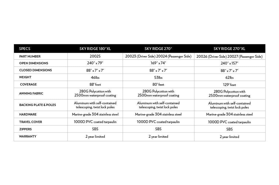 SKY RIDGE 270XL AWNING DRIVER SIDE WITH MOUNTING BRACKETS