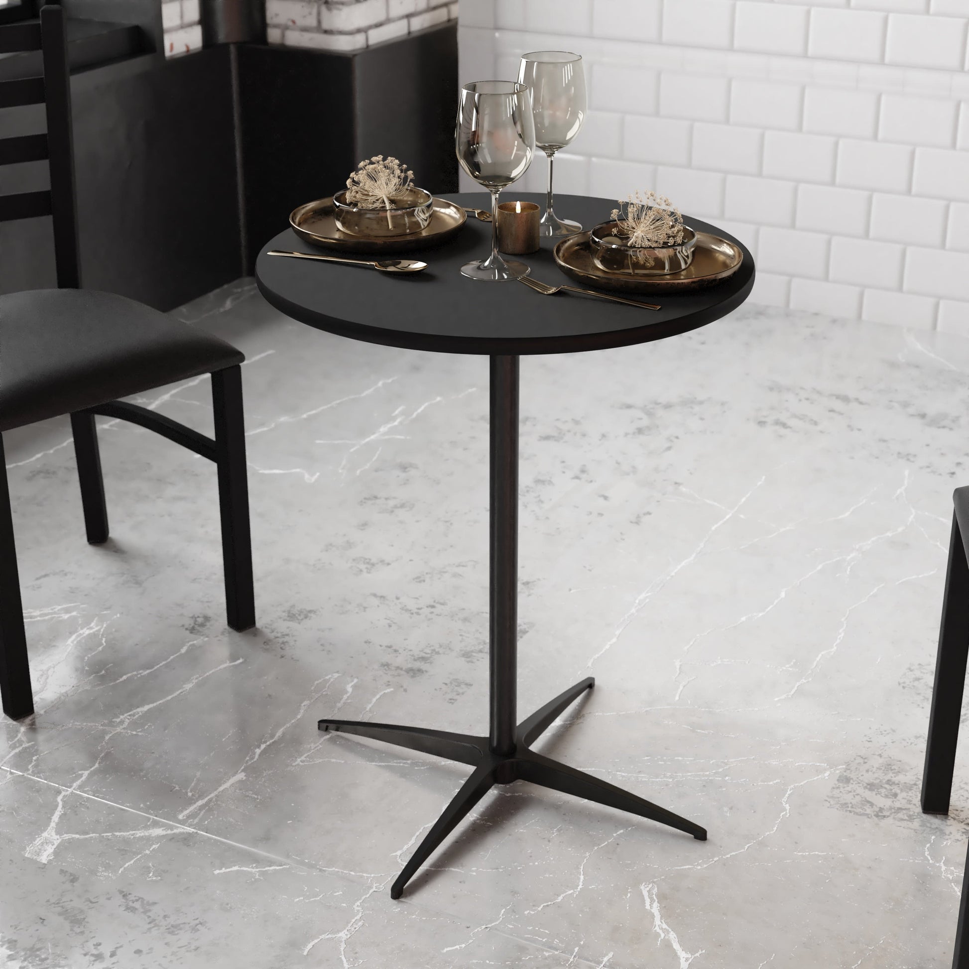 Expand the seating space at your next event or get your day started with a cup of coffee in the breakfast nook with this charming, versatile pub table. The 30" Round Cocktail Table comes with two columns to enjoy as a bar table or standard table.