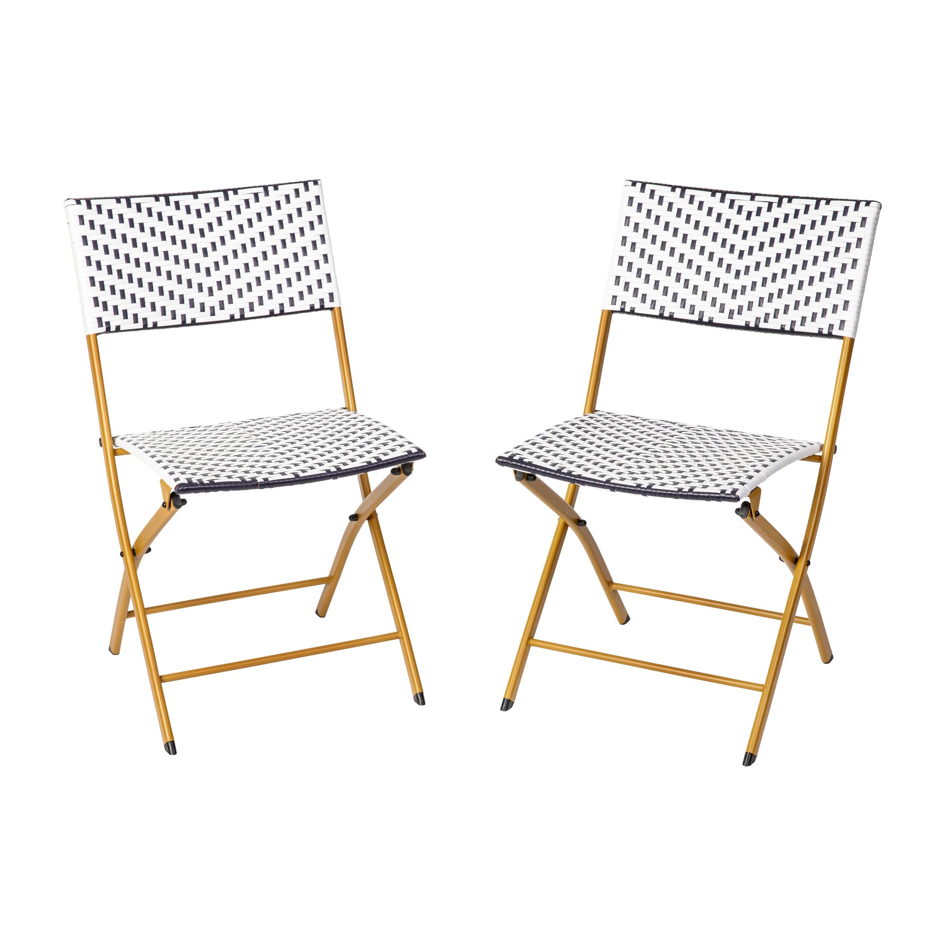 Rouen Set of Two Folding Bistro Chairs in PE Rattan with Metal Frames for Indoor and Outdoor Use