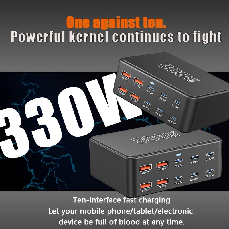 330W USB Charging Hub, 10-Port Fast Charging Station – TJR2B8Y