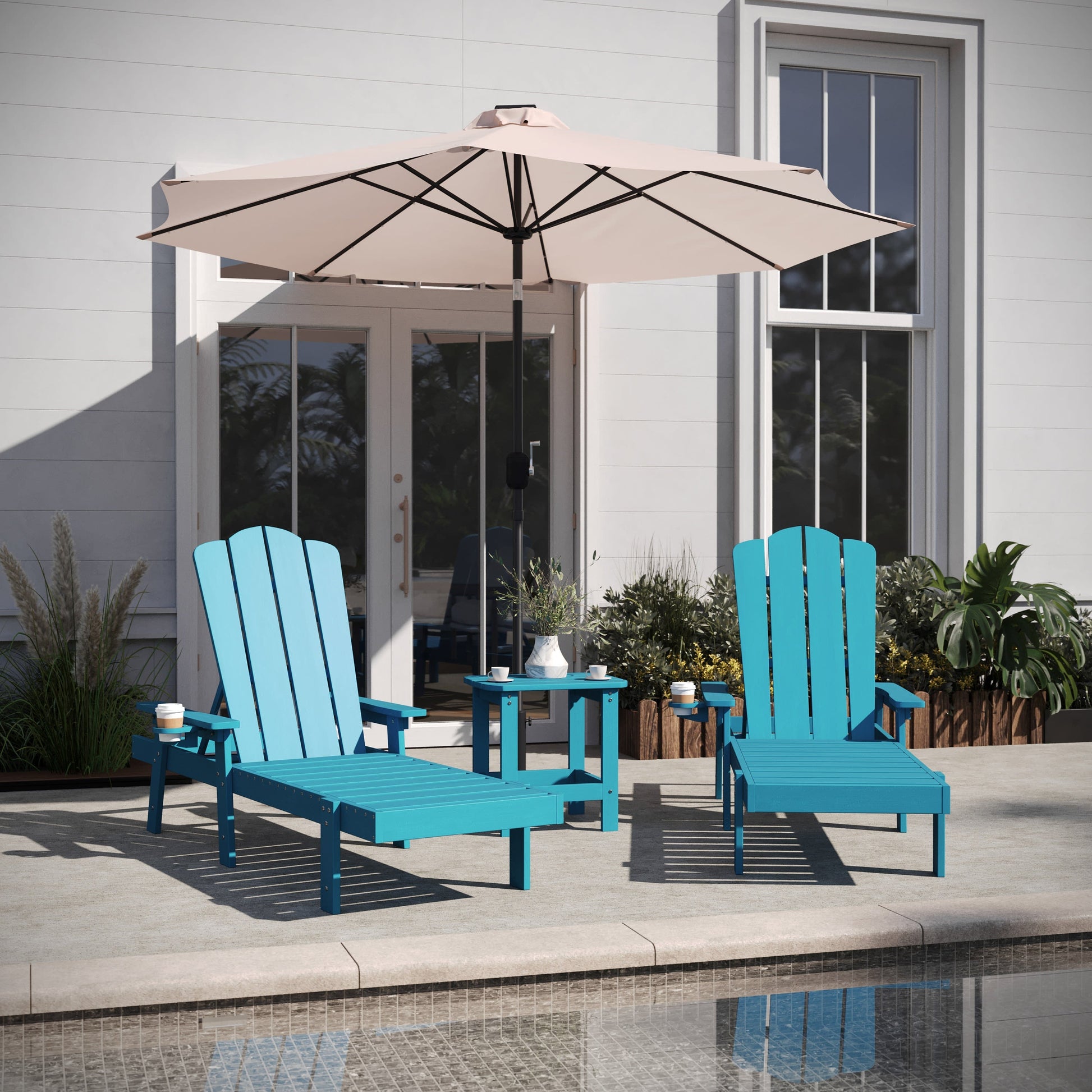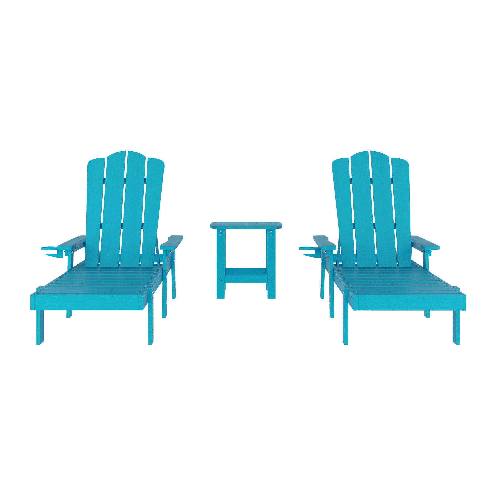 Sonora Commercial Grade 3 Piece Indoor/Outdoor Adirondack Set with 2 Adjustable HDPE Loungers with Cup Holders and 2-Tier Side Table