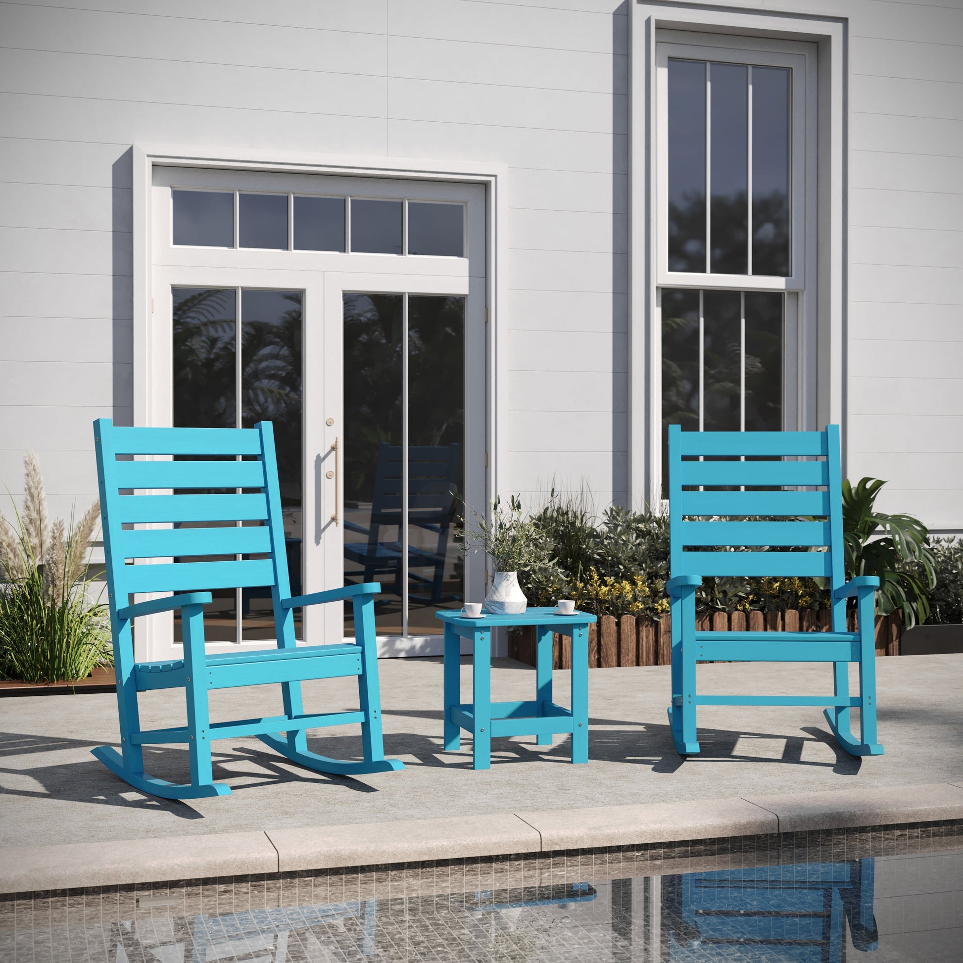 Manchester Commercial Grade 3-Piece Indoor/Outdoor Set with 2 Contemporary All-Weather HDPE Rocking Chairs and End Table