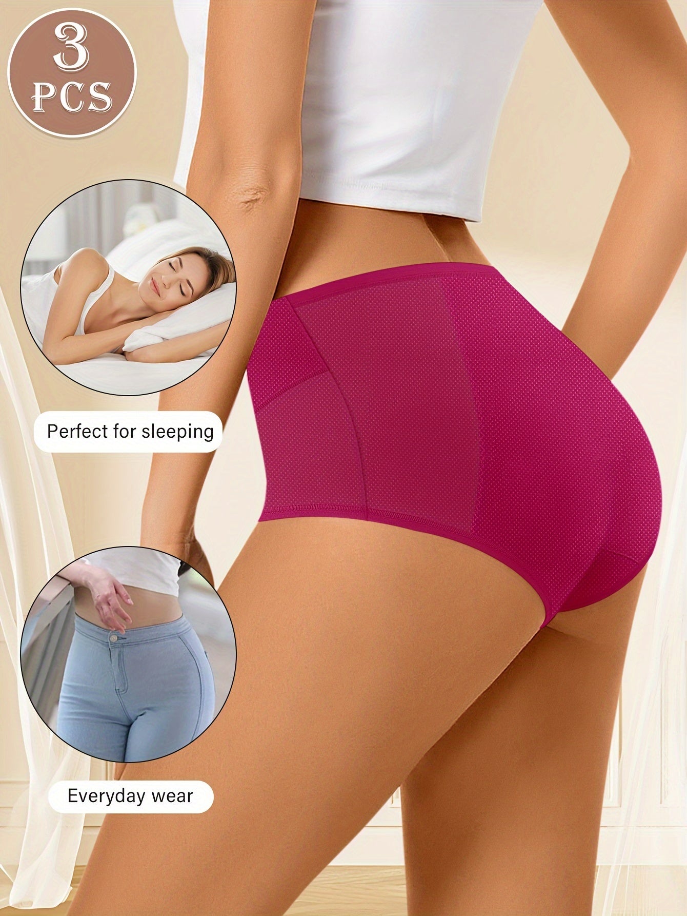 3pcs Women's Leakproof Period Panties, Mid-Rise TJR8W4C