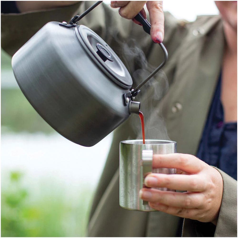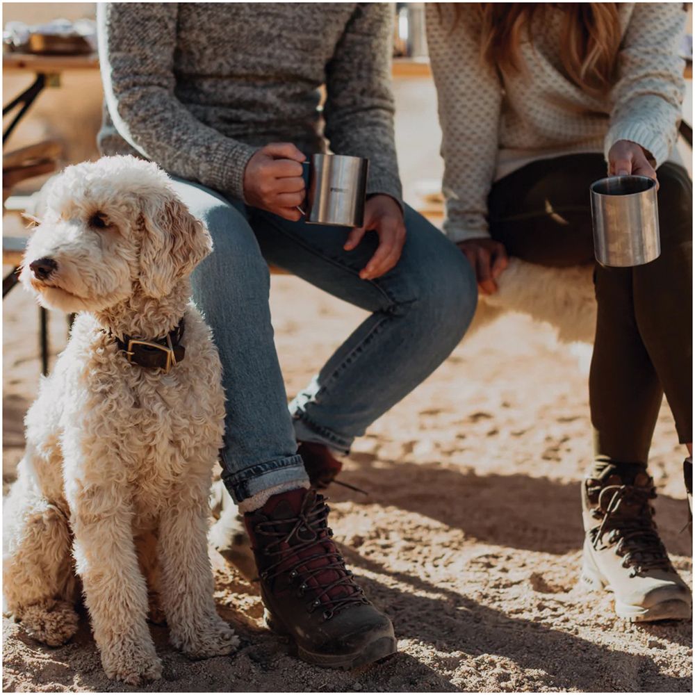 Made for your outdoor needs (or even everyday use) this 18/8 food grade stainless steel mug is made to travel and won’t pick up or give off any flavors along the way. A streamlined handle is roomy enough to use with gloves during early morning hot drinks, or without gloves when sipping a cocktail around the campfire. Double-wall construction offers the benefit of keeping your coffee steaming hot without burning your lips.