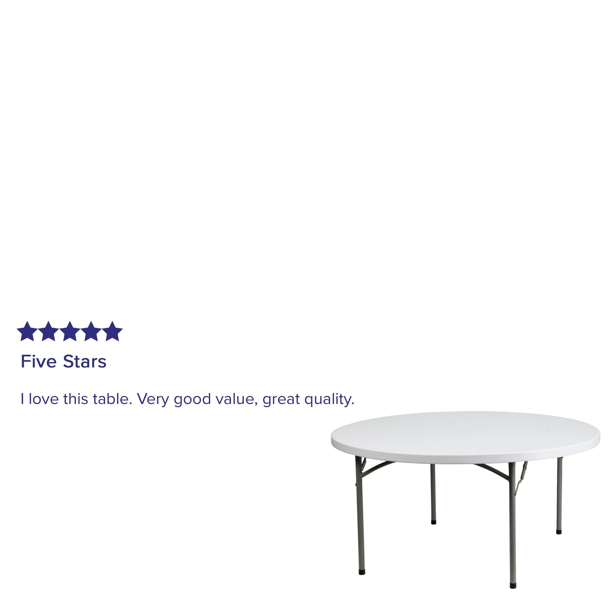 Designed for both indoor and outdoor use, store table indoors and protect the frame from extreme moisture. The 60" Round Plastic Folding Table is a convenient option for your next home, school or business event.