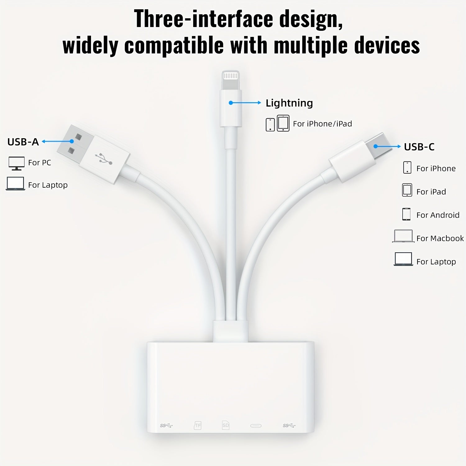 - Multi-Device Support: Compatible with iPhone/iPad, USB-C devices, and USB-A devices.