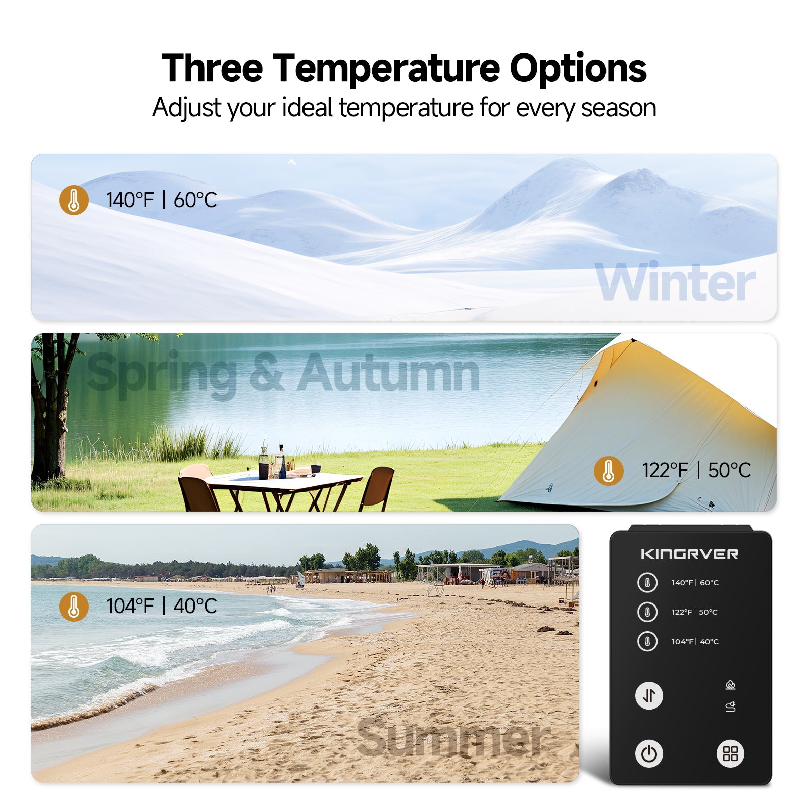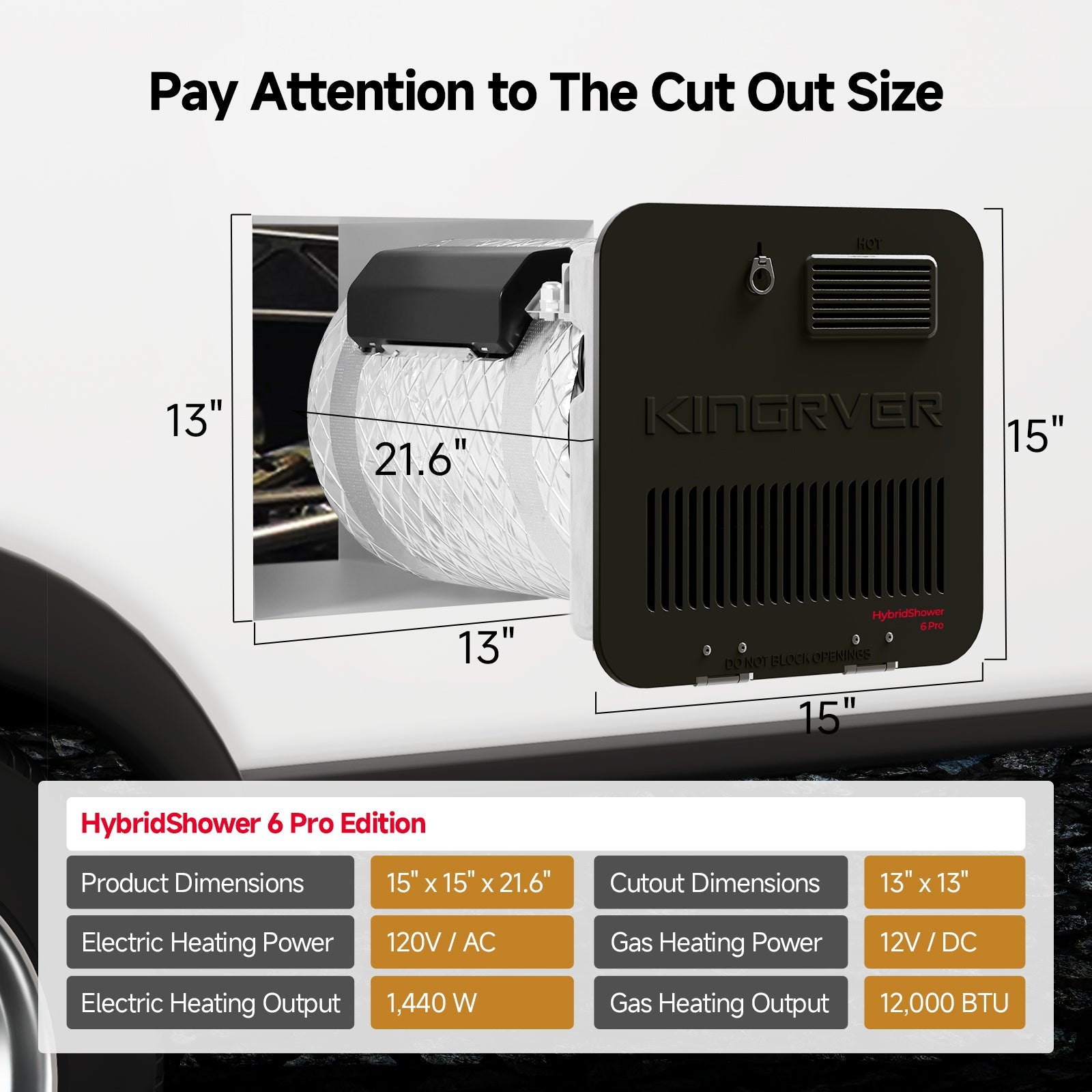 3 THOUGHTFUL TEMPERATURE SETTINGS: Unlike traditional RV water heaters with fixed temperatures, the HybridShower provides three adjustable settings. In summer, choose a lower temperature to prevent burns, and in winter, select the highest setting for a cozy hot shower. Additionally, the water heater is equipped with multiple safety features, including dry burn protection, water pressure protection, and overheat protection.