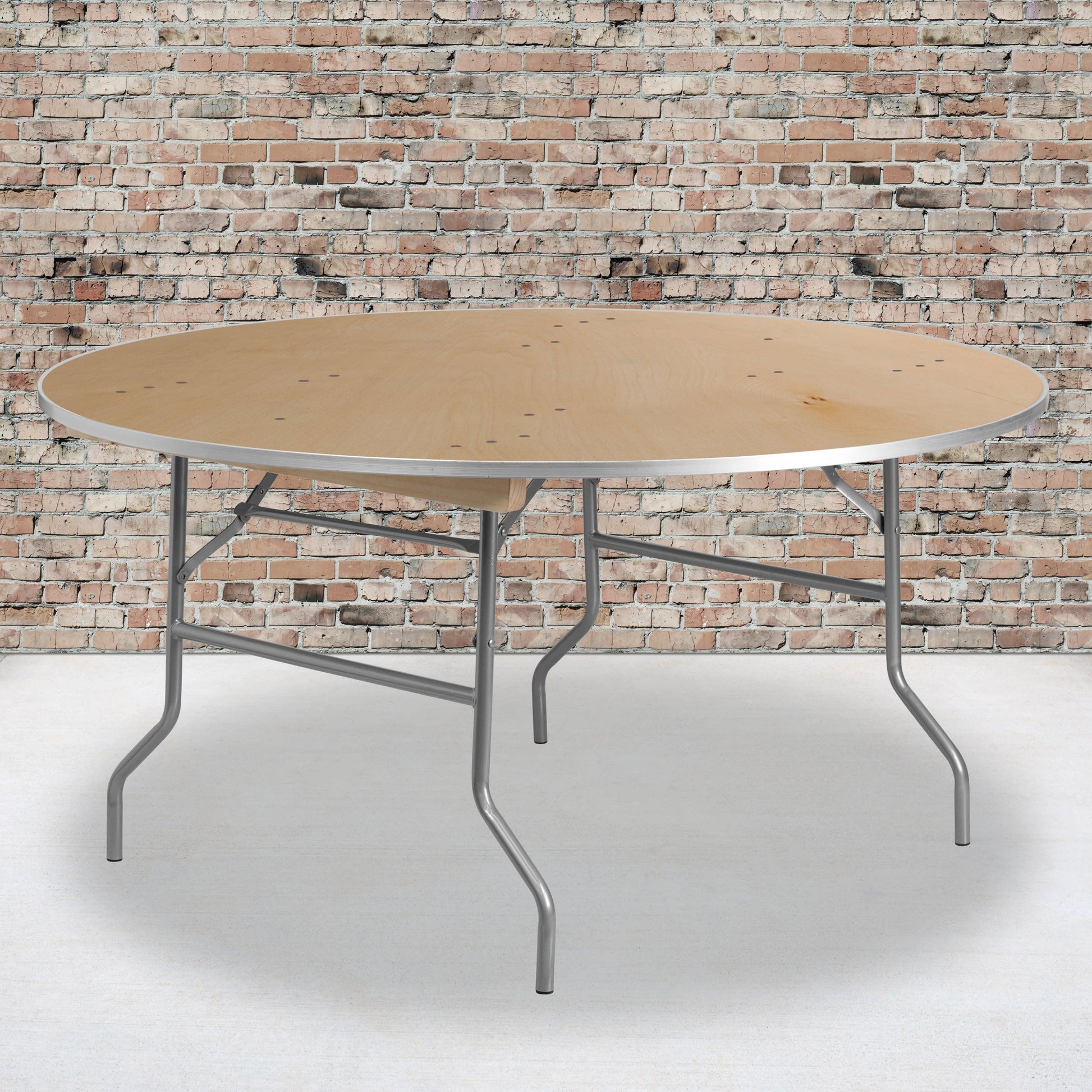 5-Foot Round HEAVY DUTY Birchwood Folding Banquet Table with METAL Edges