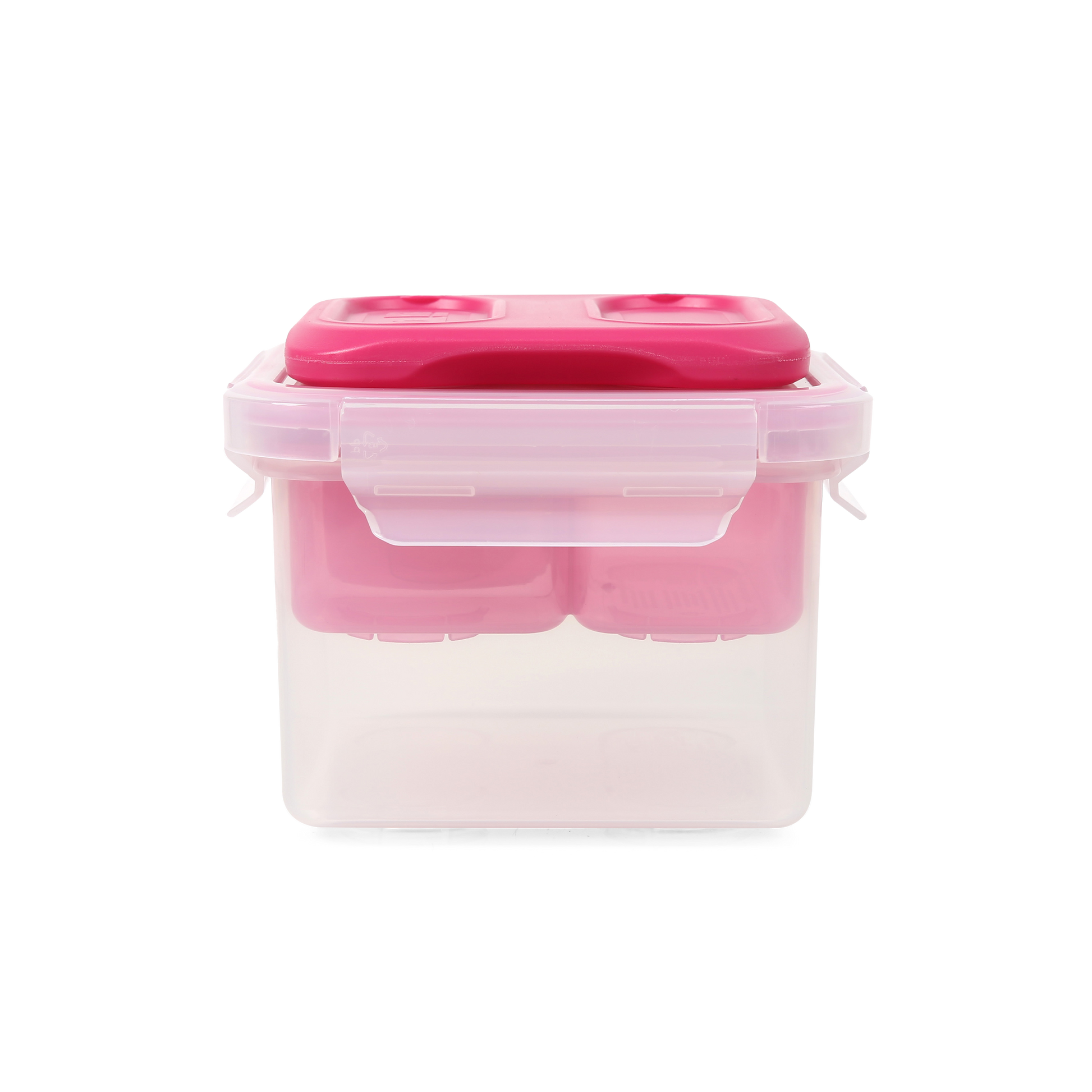 The 7 Piece Bento Lunch Set features 3 food storage containers: deep dish (6 cups), bento (1.5 cups) and condiment/dressing (4 tbsp.) as well as a high performance double Ice Brick™. Both the deep dish and bento containers have lids and can be used together (bento inside deep dish) or separately. The condiment/dressing container also includes a lid. The containers* and the Ice Brick™ have Microban® to help protect against bacterial odors and stains. The Ice Brick™ can be attached to the lid or base of the deep dish container and the base of the bento container.