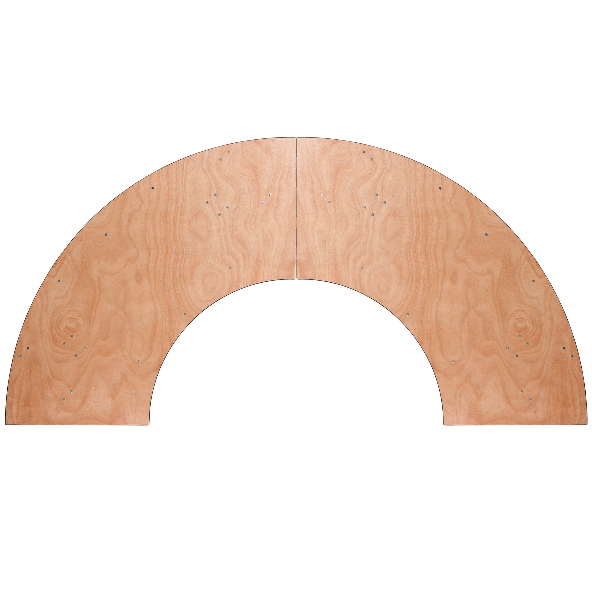 This semi-circular wood folding table allows you to create a serpentine, half circle or full circle table. The serpentine table allows you to create beautiful arrangements for weddings, banquets and other events. Create a serpentine table by placing two tables in alternate directions. Create a half circle or full circle by placing two or four tables together from end-to-end. The table legs fold under the table to make storage more convenient and for better portability. This table is commercial grade to withstand everyday use in the hospitality industry.