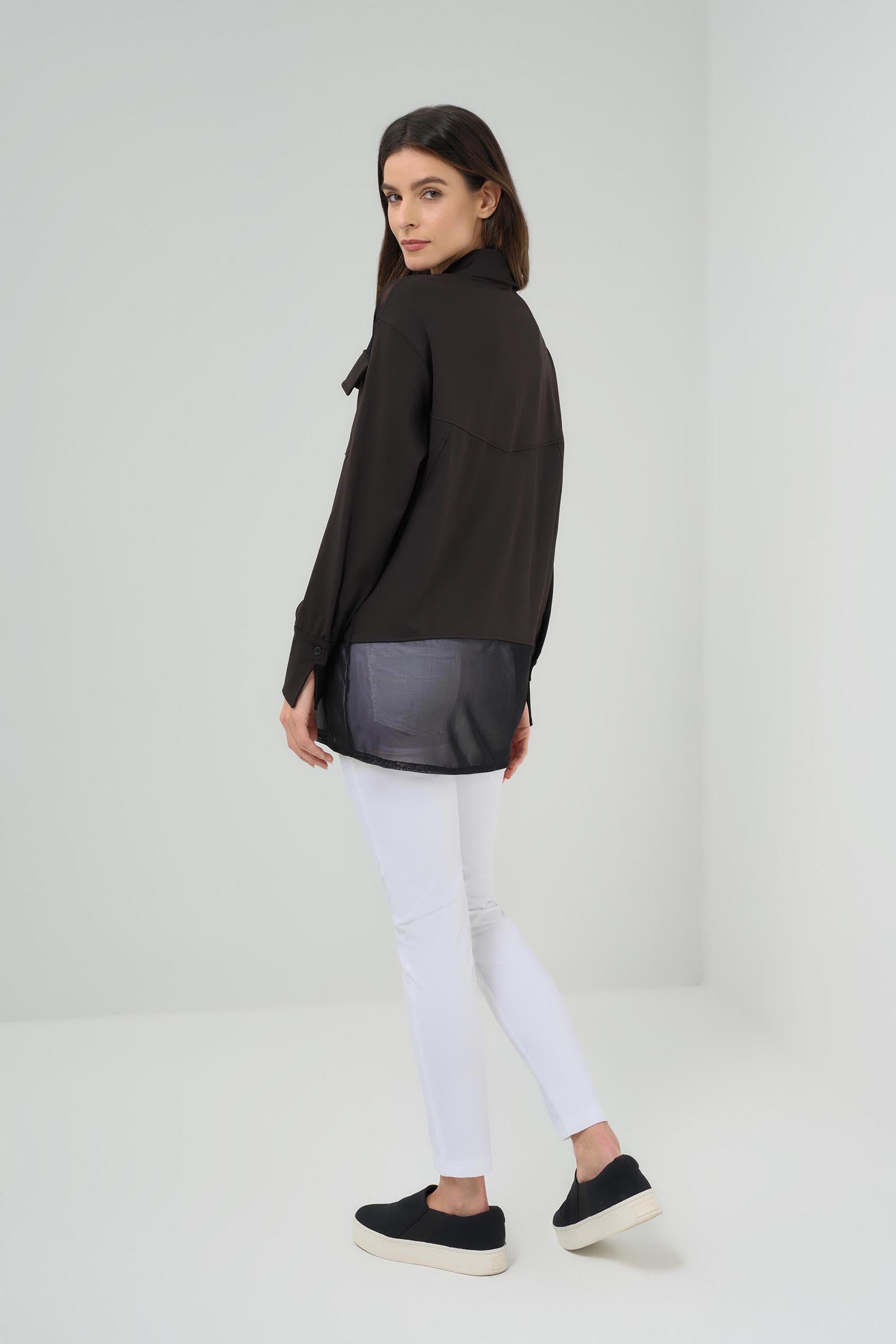 Take a bold step into fashion with the Abriana Top! This oversized chic shirt showcases an exciting mixed media design, seamlessly blending power mesh with a stretchy mid-weight body for an effortlessly unique look. Perfect for the trendsetter, this mixed media top combines comfort and style, making it a must-have for those who dare to stand out. Elevate your wardrobe with the Abriana oversized top and turn heads wherever you go.