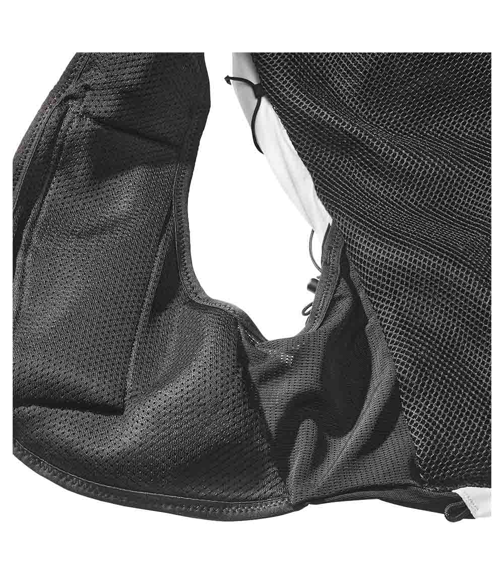 - 2 front flask pockets: Designed to fit Salomon soft flasks, these front pockets limit bouncing. Top elastic loops secure your flasks and keep them ready to drink.