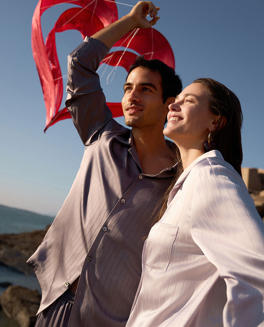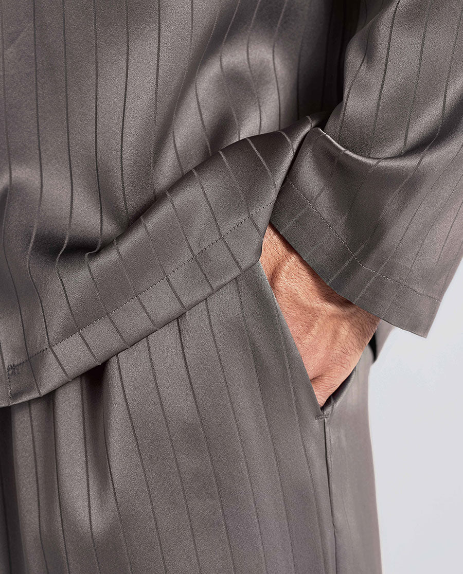 This Aimer Men Mulberry Silk Camp Collar Pajama Top features a high-quality blend of 93% mulberry silk, complete with a classic, timeless camp collar and open front design. Enjoy luxurious comfort and style with this must-have piece.