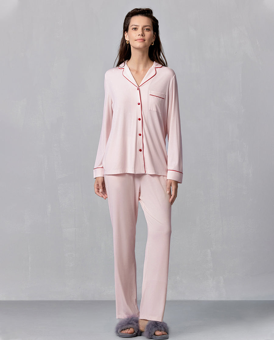 Elevate your wardrobe with our stylish Milk Fiber Collection Pajama Set. This set includes a classic collared long-sleeve cardigan that adds a touch of sophistication to any outfit. Versatile and comfortable, this set is perfect for home.