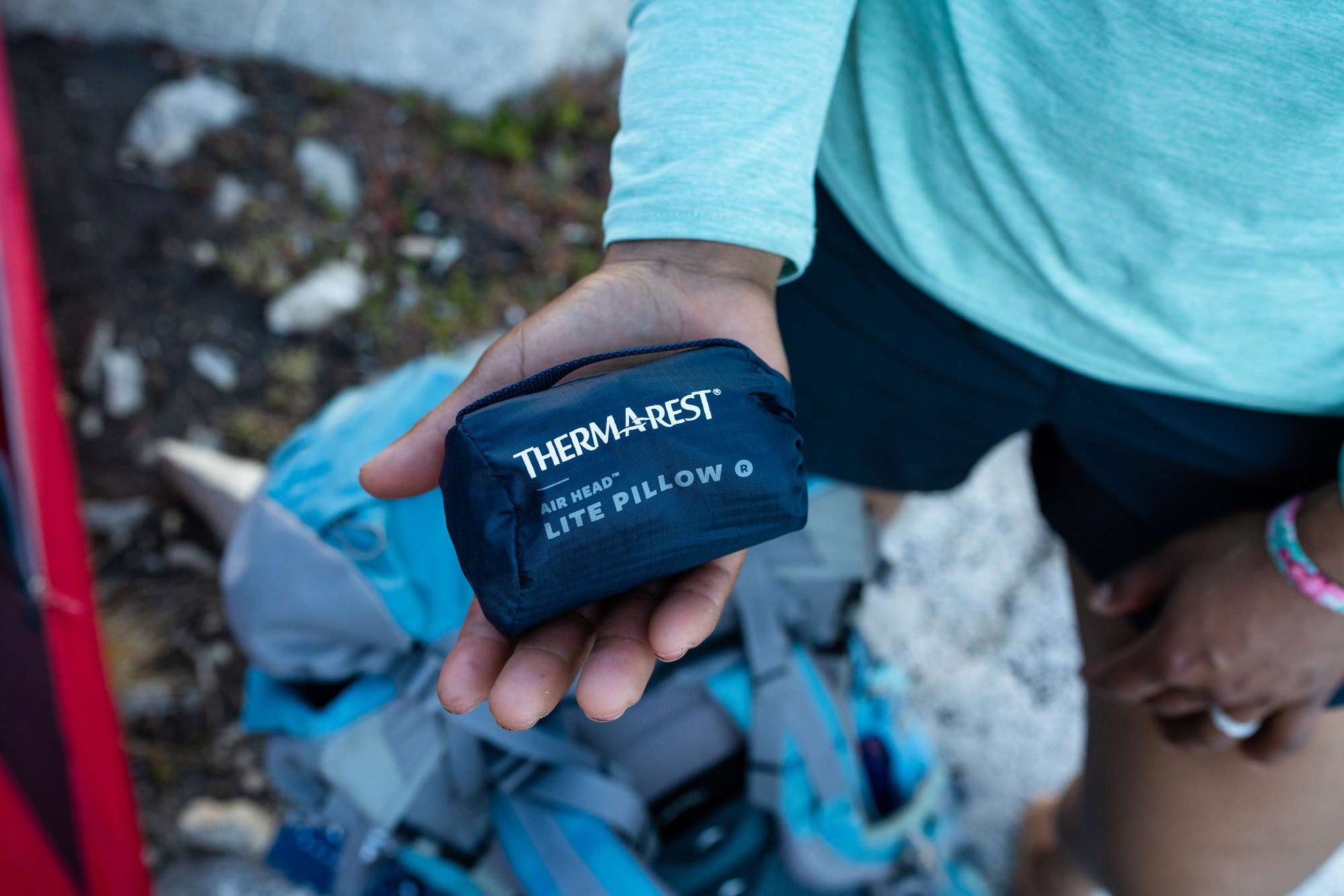 Ultralight pillow fits in your pocket before inflating to provide big comfort at camp.