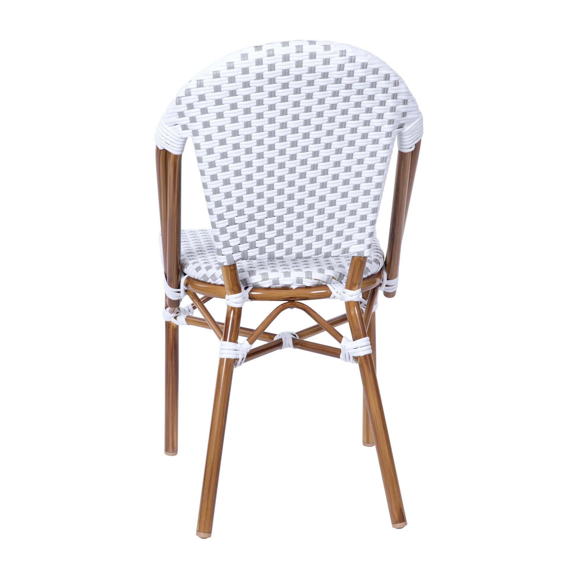 Lourdes Indoor/Outdoor Commercial Bistro Stacking Chair, PE Rattan Back and Seat, Bamboo Print Aluminum Frame