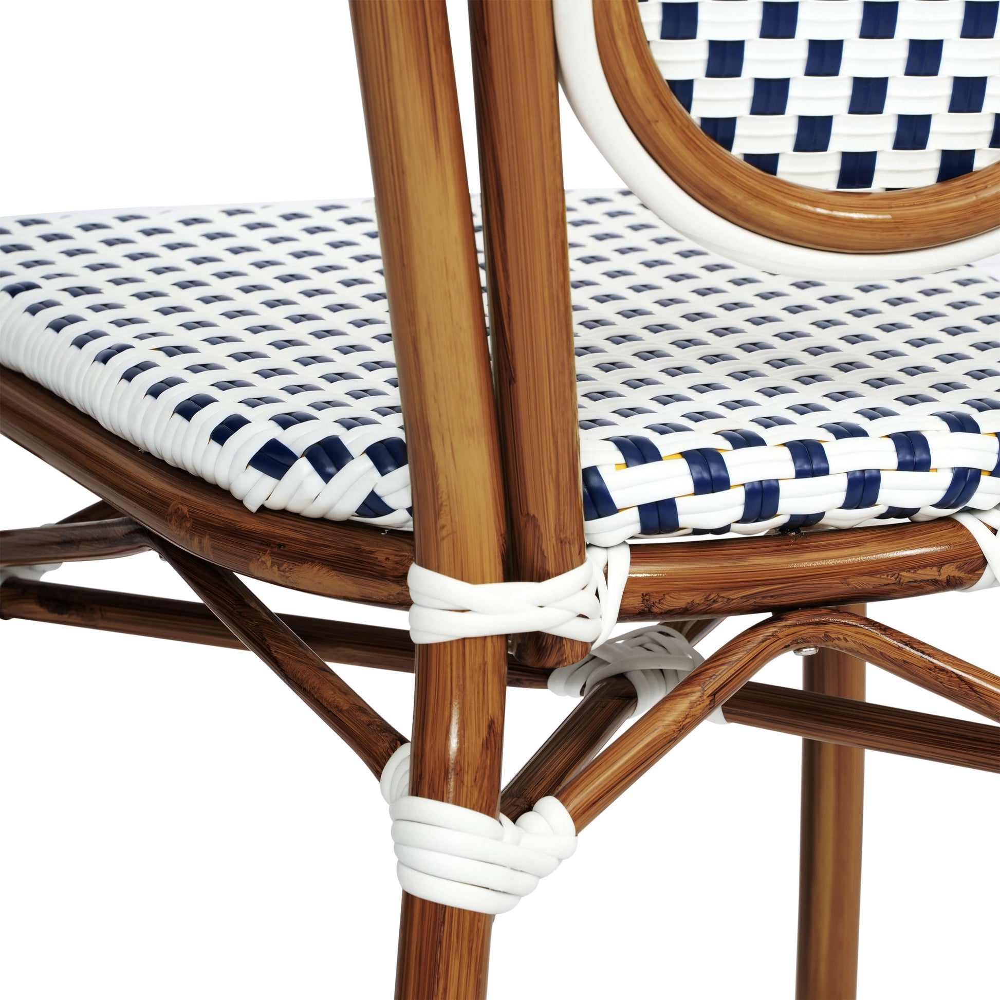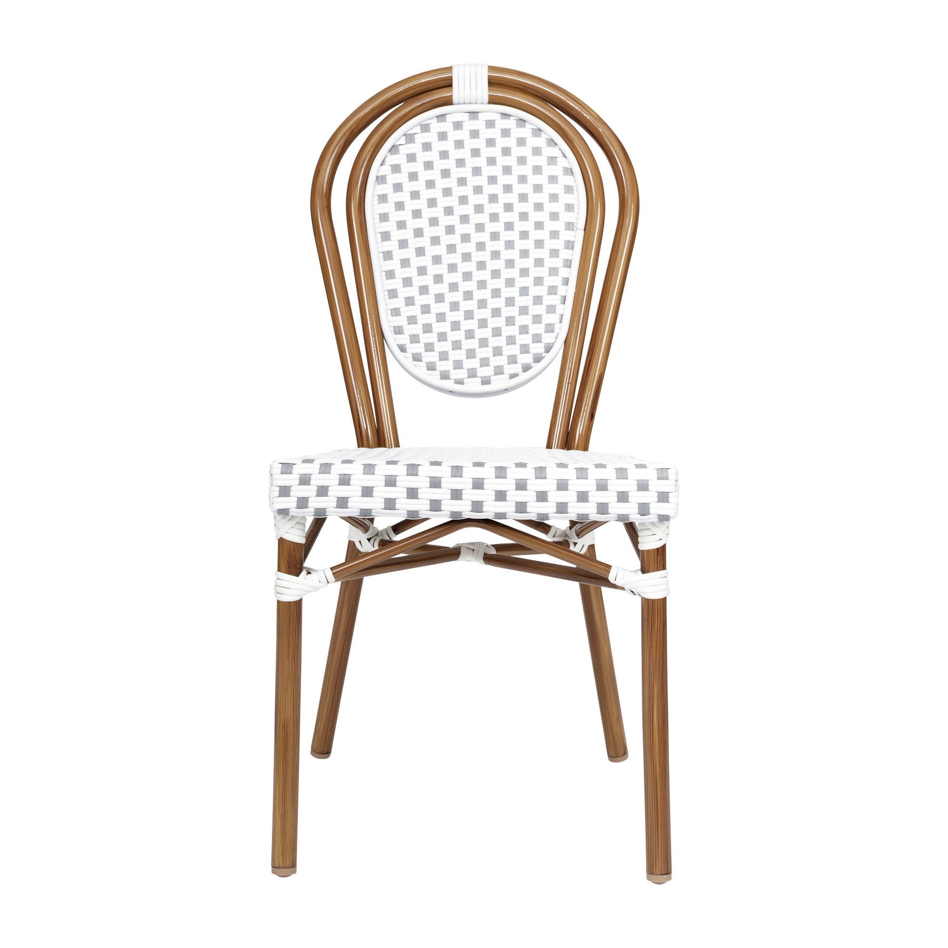 Lourdes Indoor/Outdoor Commercial Thonet Bistro Stacking Chair, PE Rattan and Aluminum Frame