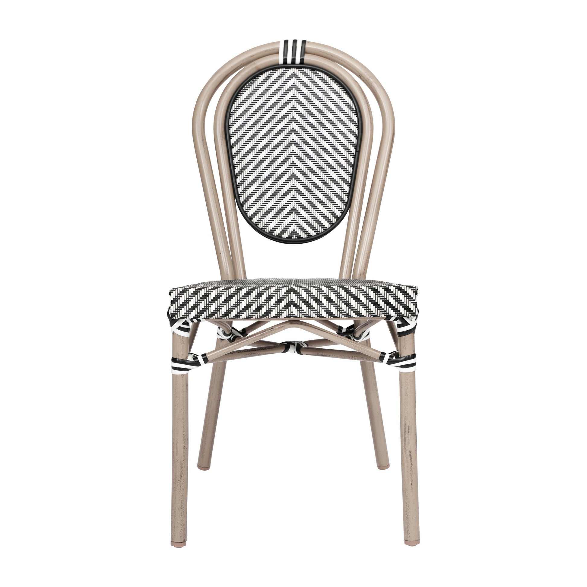 Marseille Indoor/Outdoor Commercial Thonet Bistro Stacking Chair, Textilene and Bamboo Print Aluminum Frame