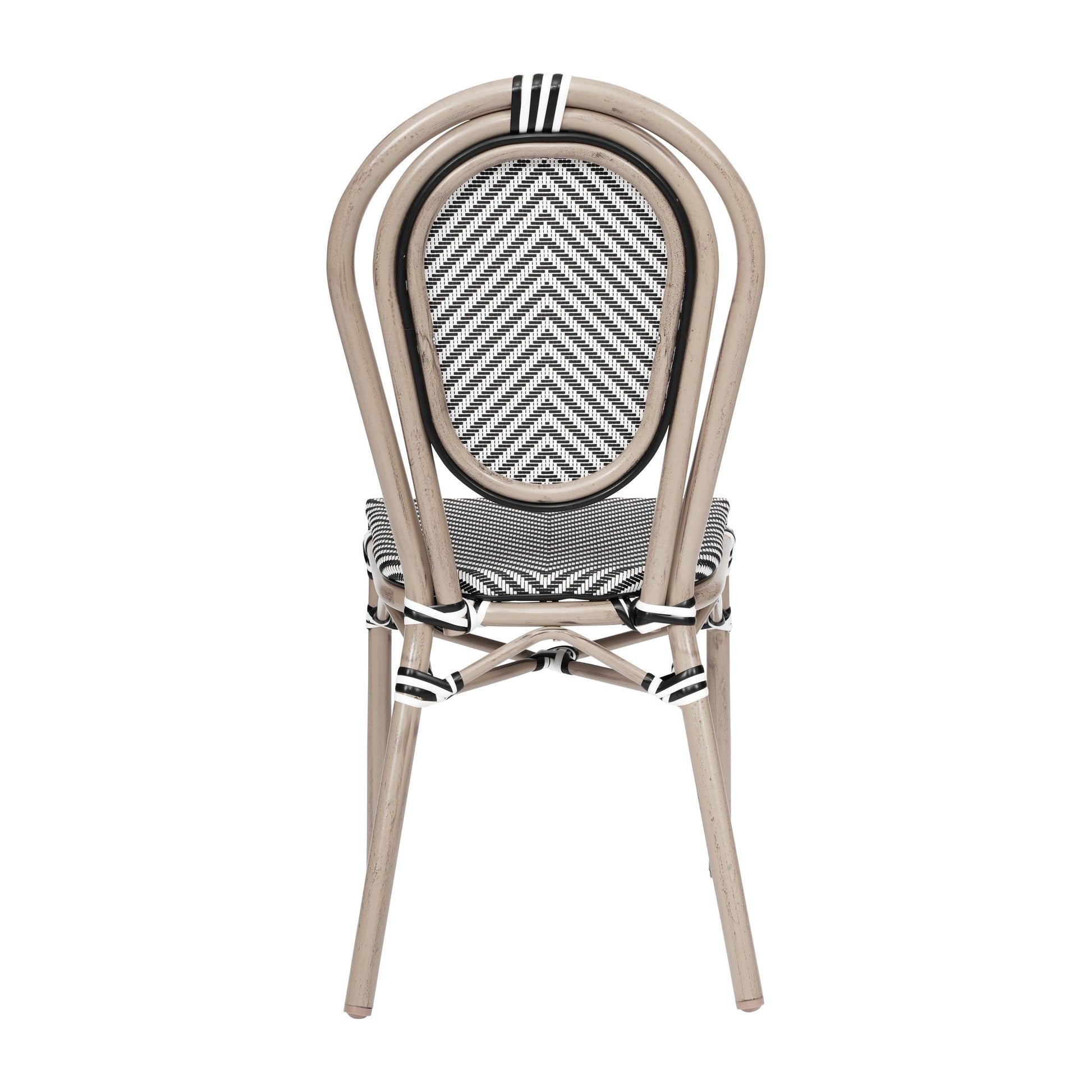 Bring the street vibes of Paris right into your restaurant, bistro, hotel, or backyard patio with this indoor/outdoor commercial grade bistro chair. The breathable textilene Thonet-style round back and seat won't fade, provides airflow to keep guests comfortable, and aids with drying when used outdoors. The lightweight, but durable, powder coated metal frame boasts a bamboo look finish available in 2 hues, holds up to 400 lbs. static weight, and will not rust. Recommended stack height for this chair is up to 5 high for storage or transport. For your convenience, this chair arrives completely assembled for instant use and features floor protector glides to prevent damage to indoor hard flooring surfaces. This dining chair easily wipes clean with a damp cloth for quick seating turnaround.