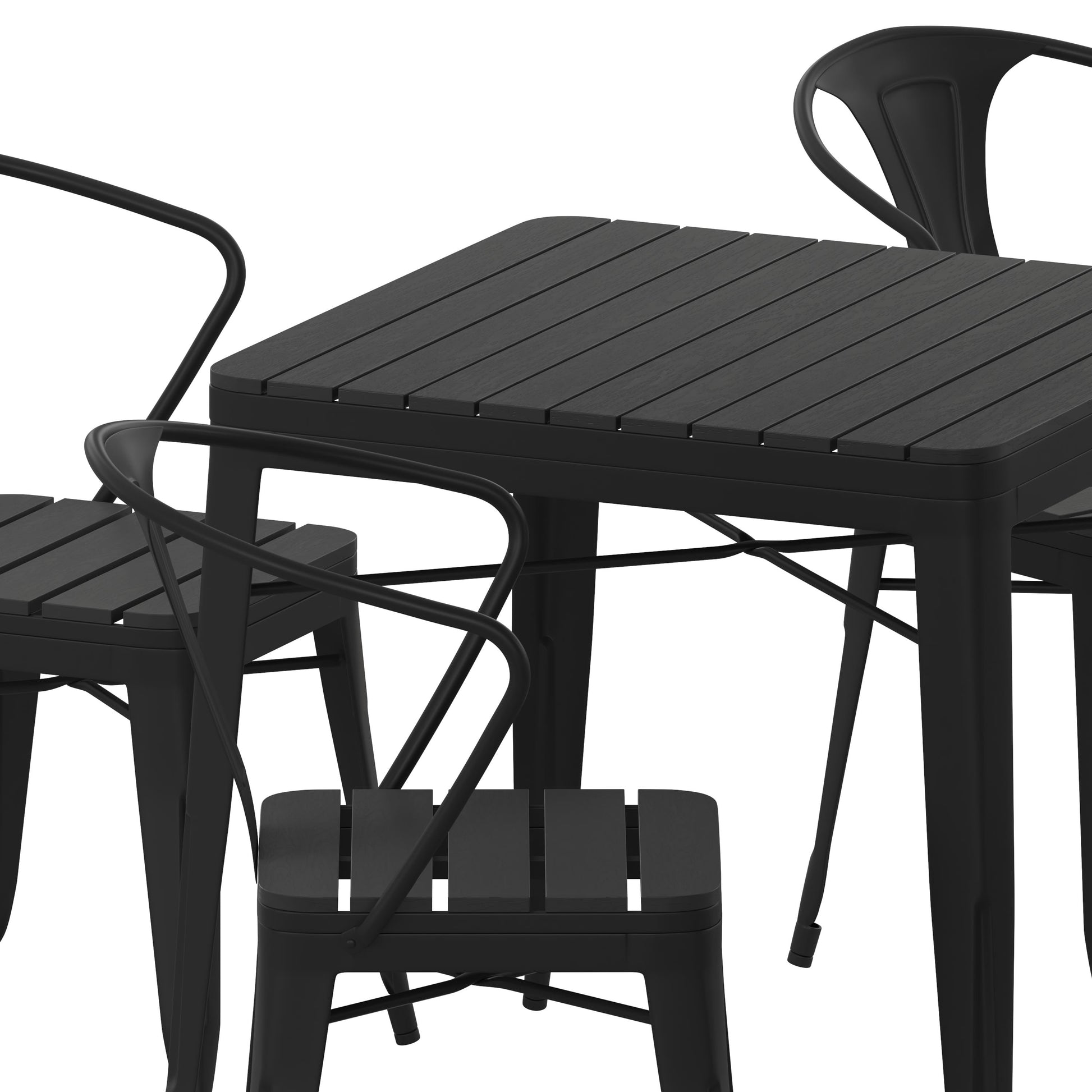 Helvey Commercial 5 Piece Indoor-Outdoor Table and Chairs, 31.5" Square Table with Poly Resin Top, 4 Metal Chairs with Poly Resin Seats