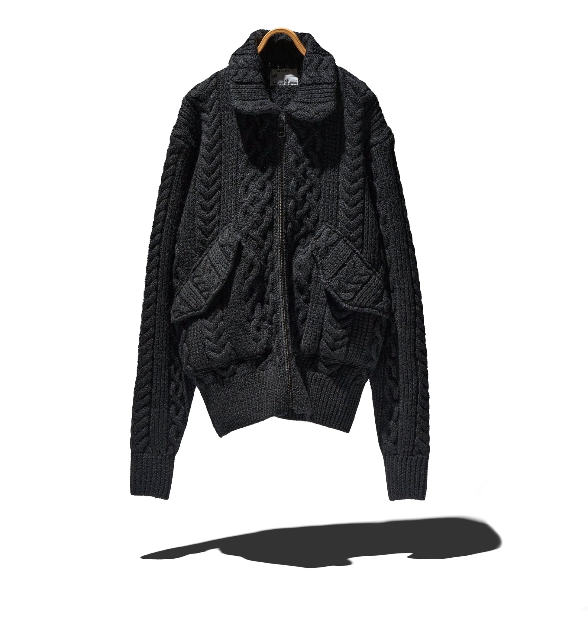 The CWU series, which has been the motif of many NEXUSVII. garments, has been produced in knitwear based on vintage aran knitwear.