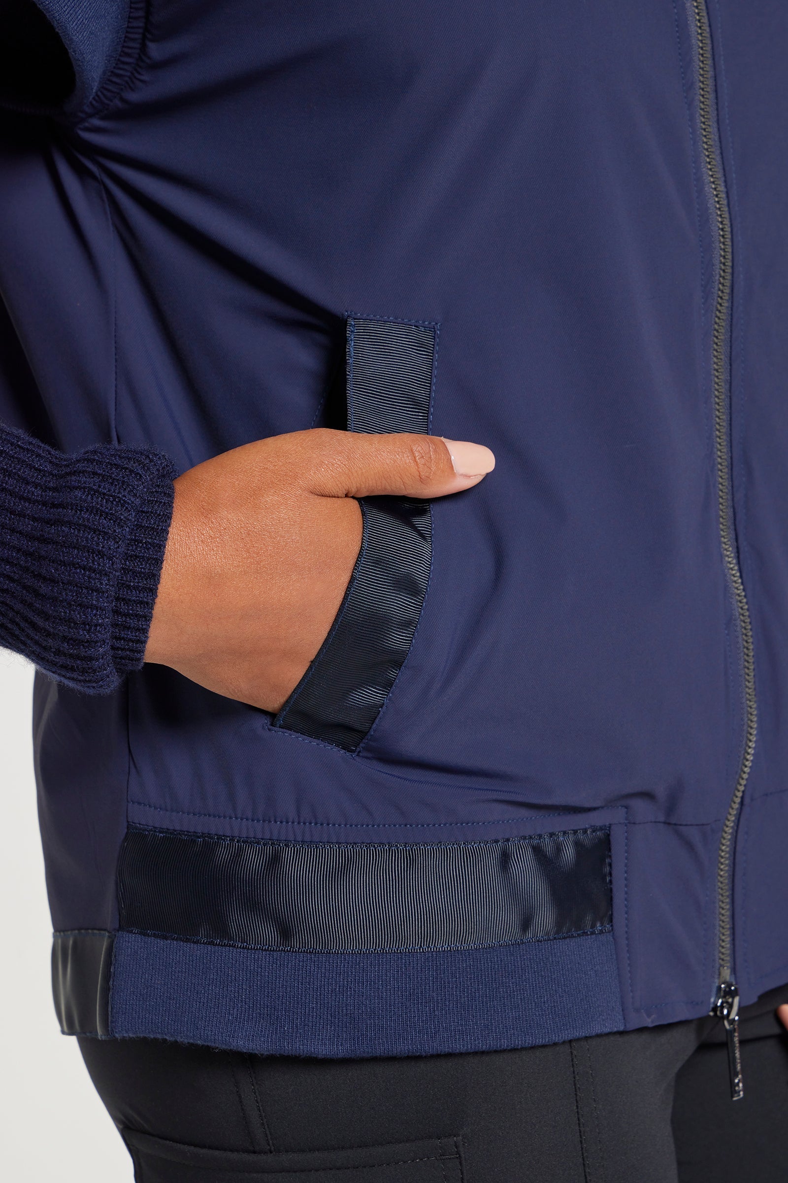 - Rib knit collar and cuffs