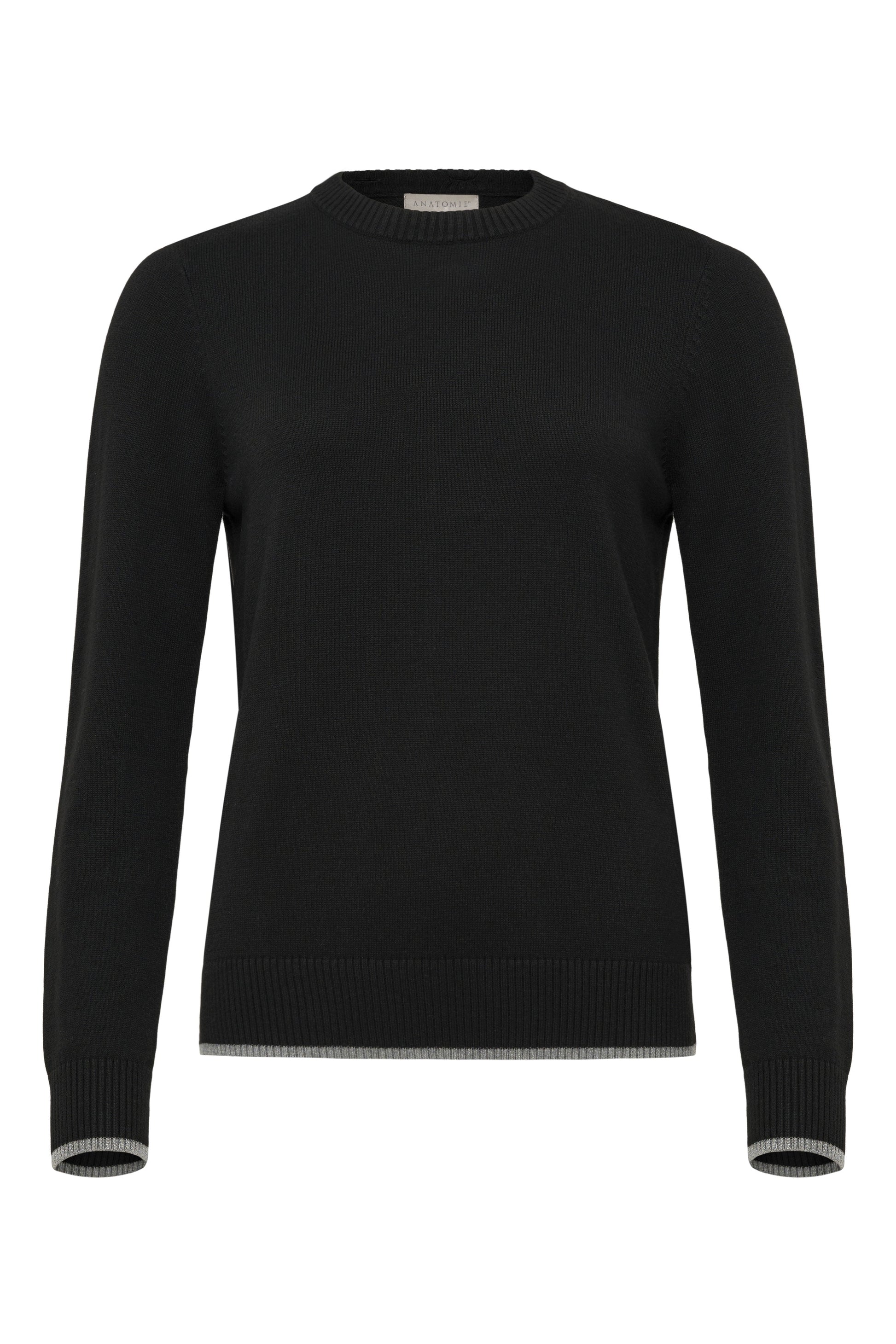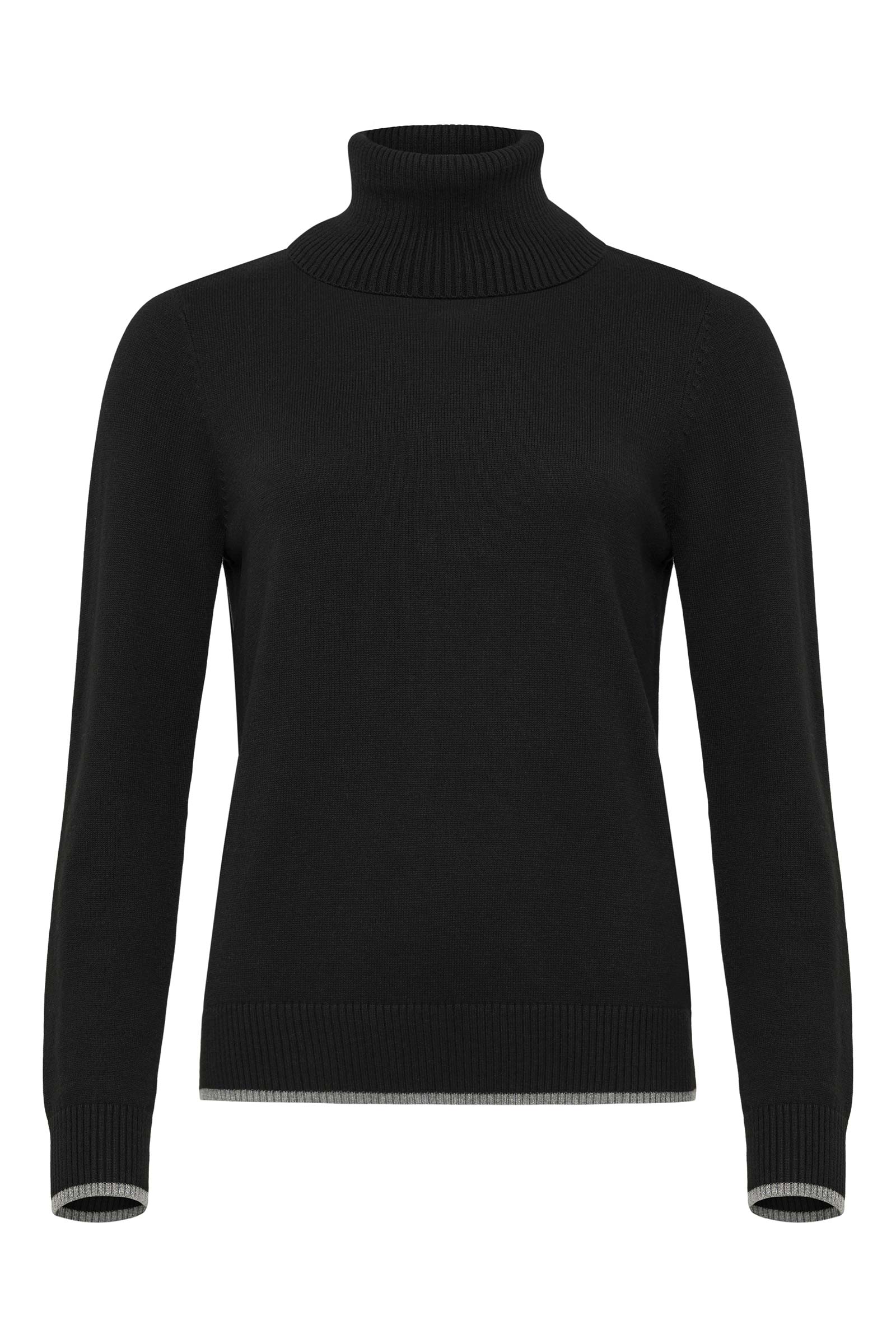 - Black Sweater Has Silver Stripe Along Bottom Hem and Sleeve Cuffs, Hidden Buttons For Removable Turtleneck