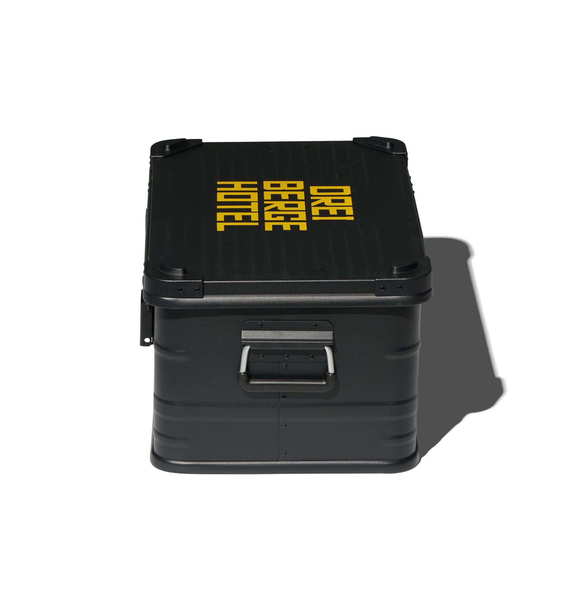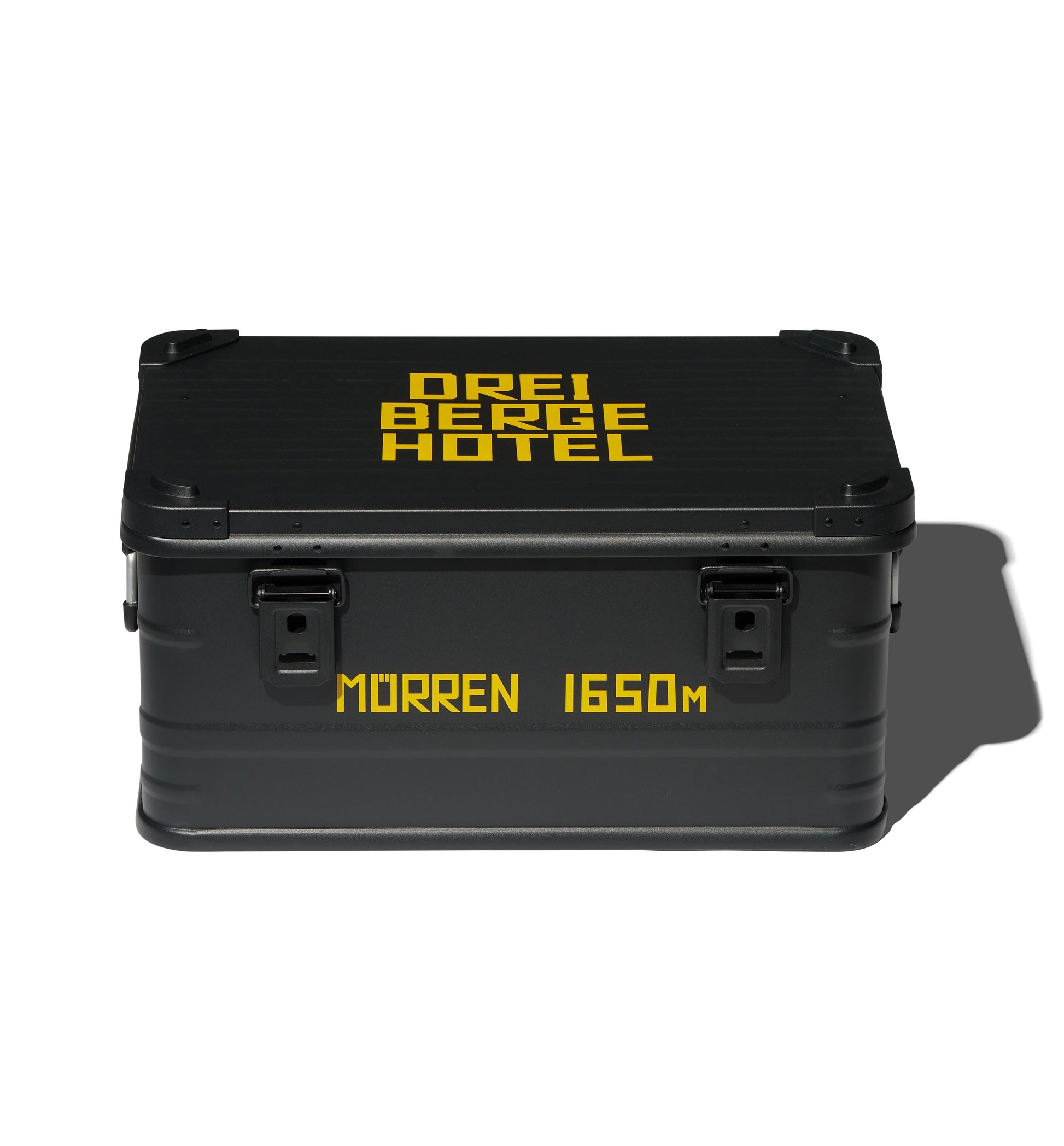Built to move and built to last. Designed by Art Recherche Industrie for the Swiss hotel Drei Berge, this bold black and yellow Army Case goes wherever you do, on your travels, in the trunk of your car, or at home.