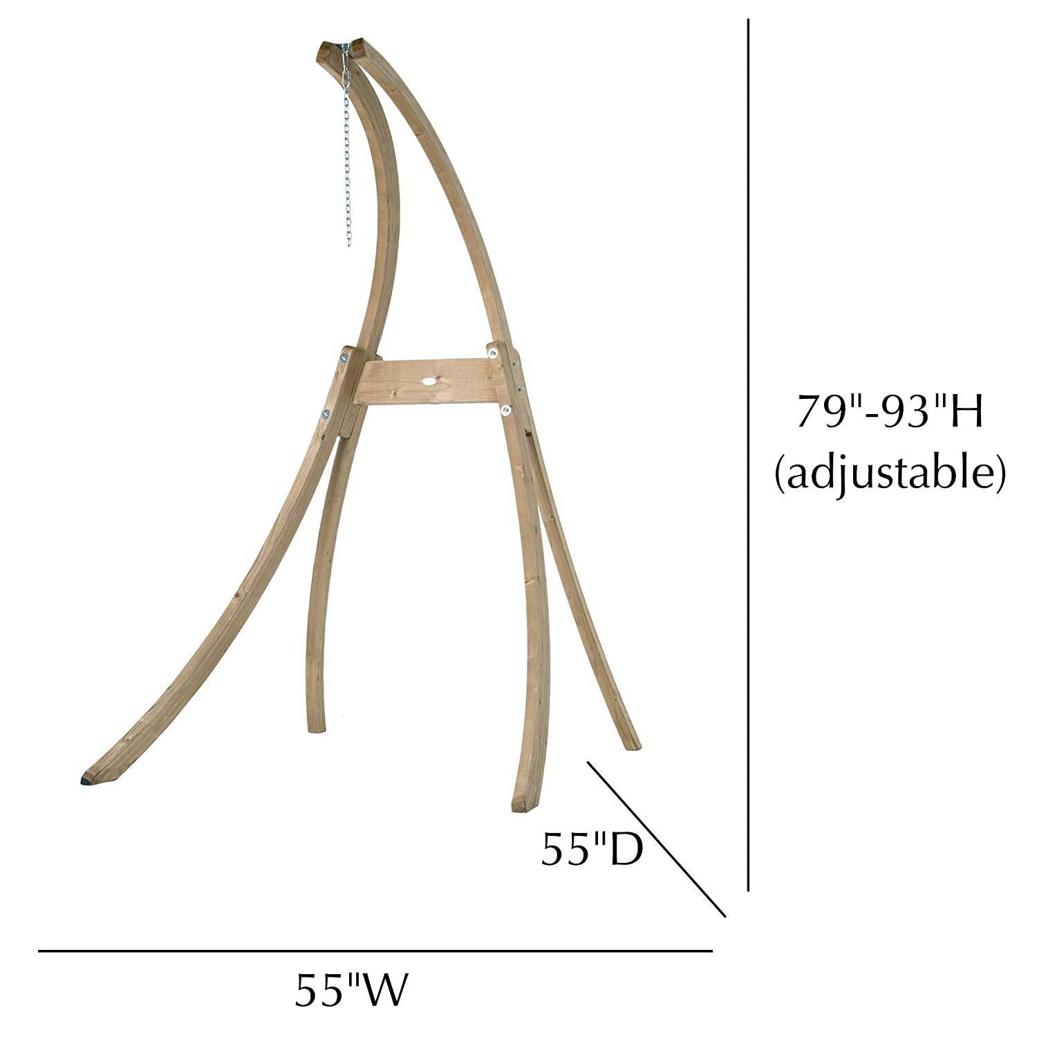 Enjoy peaceful relaxation, indoors or out with the hanging chair of your choice. Handsome, graceful design is possible with the strong, stiff laminated spruce wood construction. Hanging height is adjustable with provided chain and carabiner. Chair stand is factory treated with a penetrating oil finish.