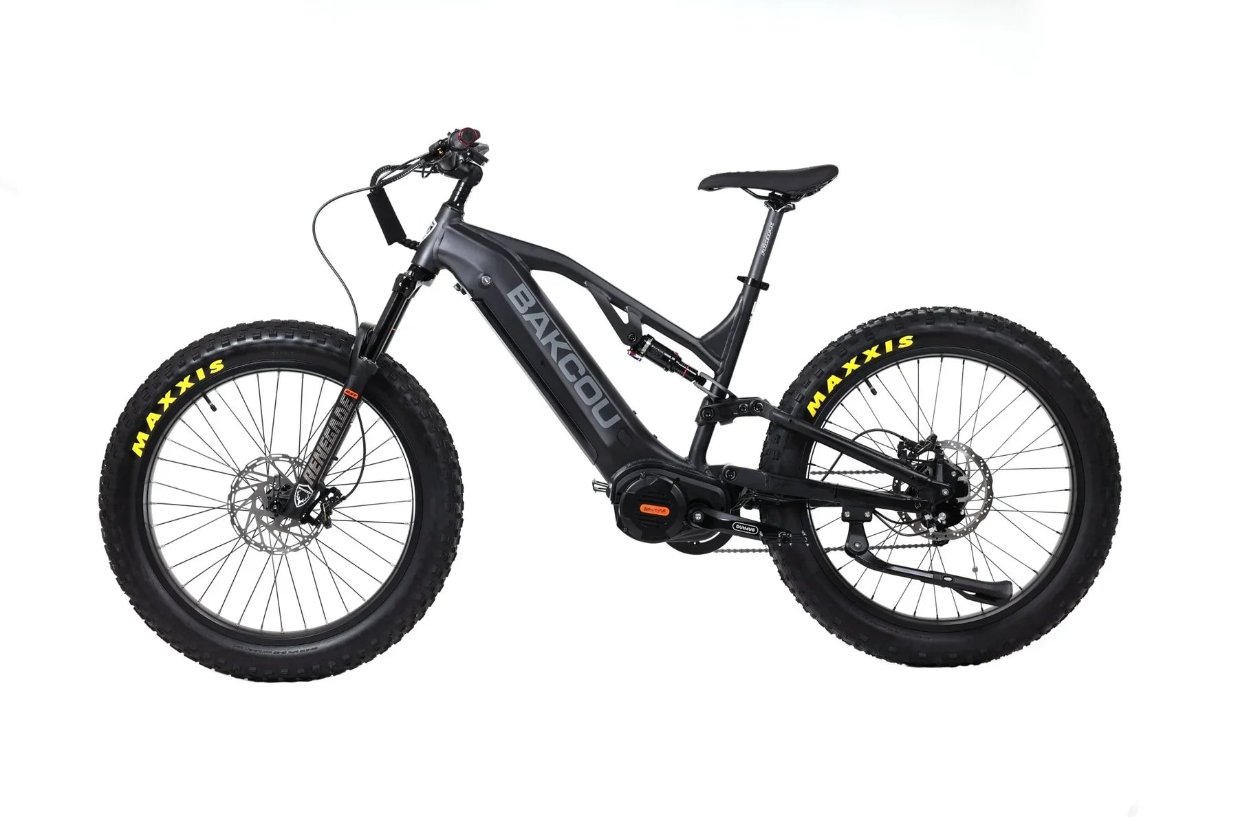Bakcou's first full-suspension fat-tire eBike built for sport riding, redefined. The Scout Jäger is built around a Rohloff internal speed hub, offering all the capabilities of a Scout PLUS an increased gear ratio for enhanced climbing and the comfort of an internalized gearing system.
