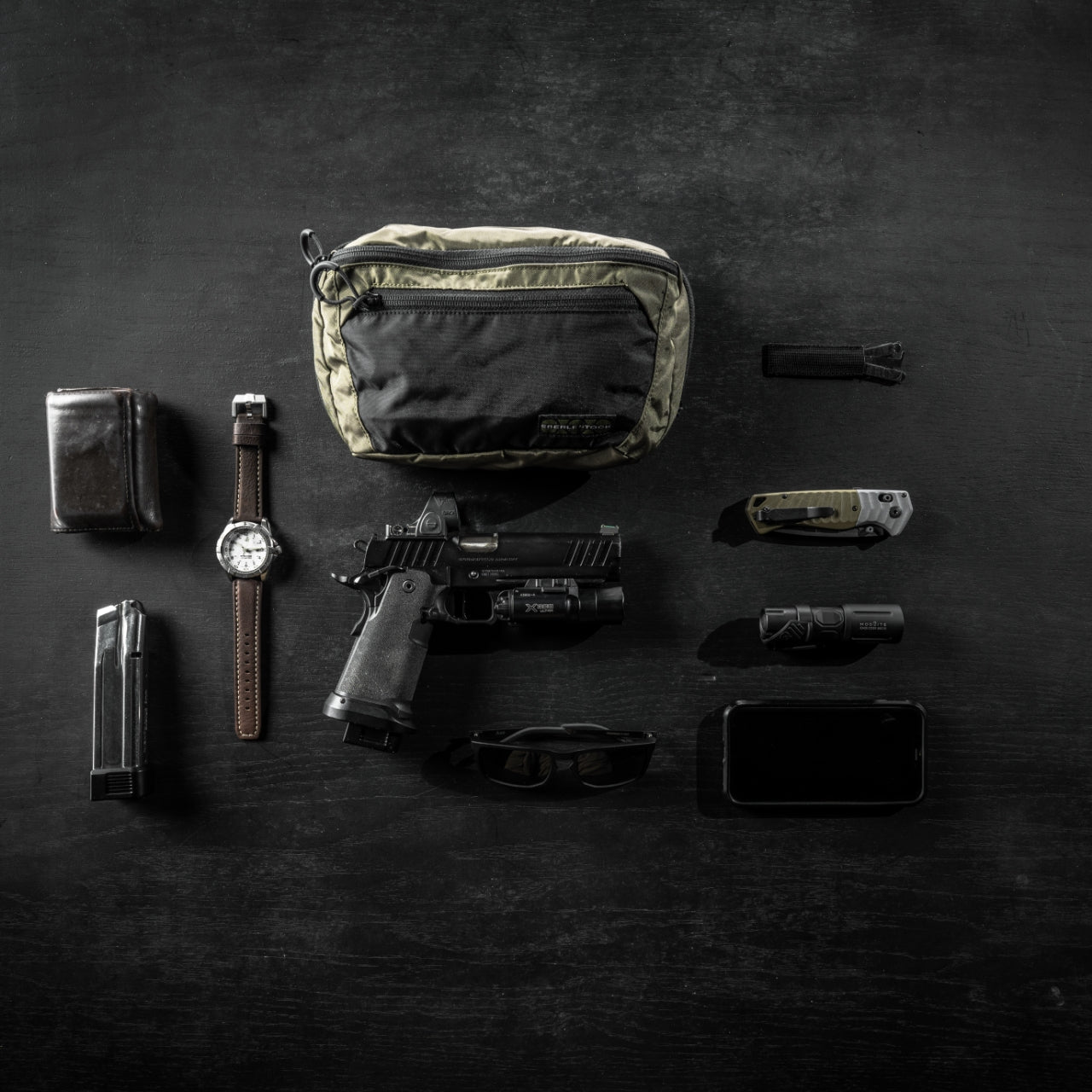 Like an ammunition Bandolier, the Bando Bag is a lightweight and convenient way to transport your EDC items. A full-zip back pocket on the Bando measures 5.25”H x 9.25”W x 3”D, large enough to secure most sub-compact and compact sidearms like the Glock-19 and those similar in size. The main compartment features an interior mesh zippered pocket, and two slip pockets for additional organization. A small zippered front pocket is perfect for keys, cords, or other small items. The waist belt length is adjustable from 31.5” - 44”. For added security, run the Bando Bag with your own trigger guard or hook-and-loop holster.