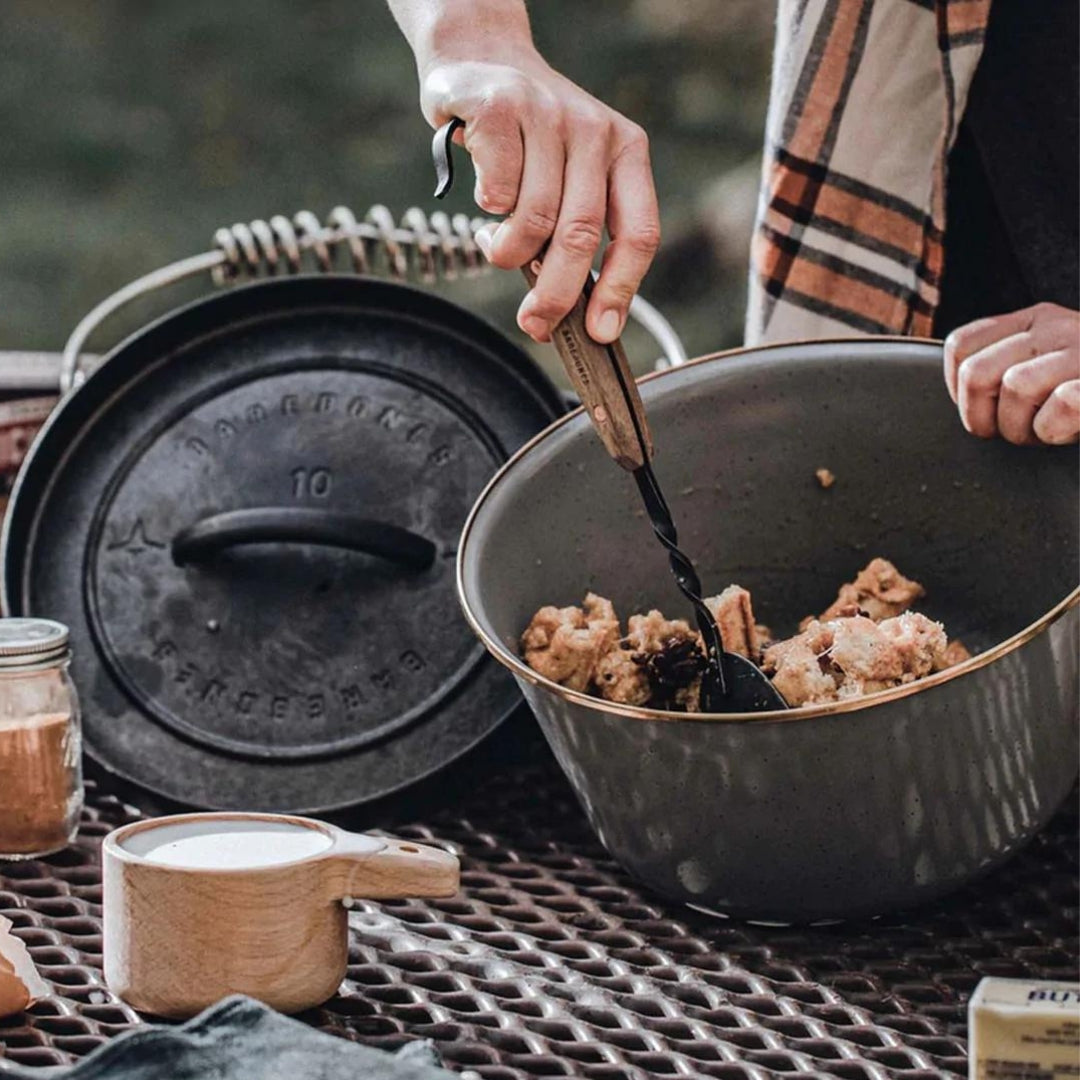 Process wet and dry ingredients to make all of your favorite sweets, breads, pastries, and more. Durable and sophisticated enough for both your camp kit and kitchen cooking, this Mixing Bowl Set features a hand-finished, baked stainless steel trim that creates a bronze-like patina finish. Lightweight and stackable.