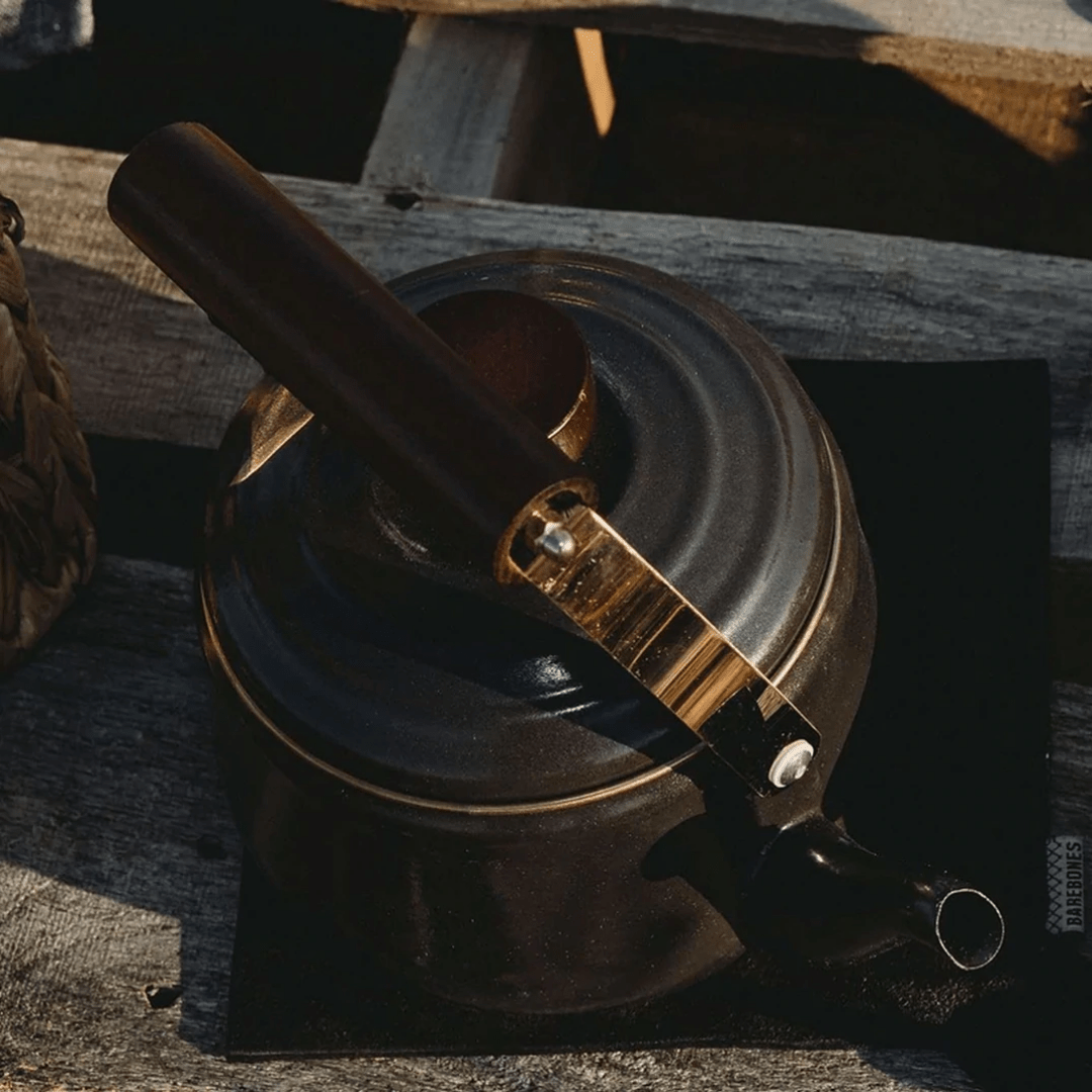 A beautiful statement piece for your camp kit or home kitchen. Ideal for quickly heating water for camp coffee, tea, hot chocolate, and more. The Teapot features a hand-finished, baked stainless steel trim that creates a copper-like patina finish and matches our full enamelware line.