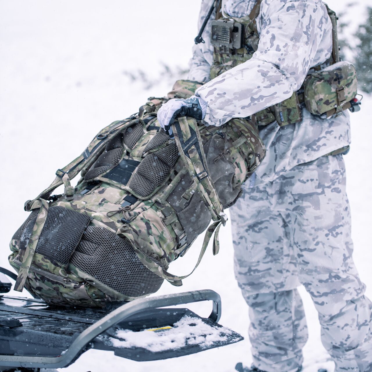 The Battleship™ is an upgraded version of the modern mountaineering style backpack. Both top and front-loading capabilities makes getting to your gear a whole lot easier with a pack of this scale and the diaphragm system can separate the top and bottom compartments. Grapple™ compression straps keep your gear tight to your body and also act as a mounting system for sleeping pads, tents, or even a rifle.