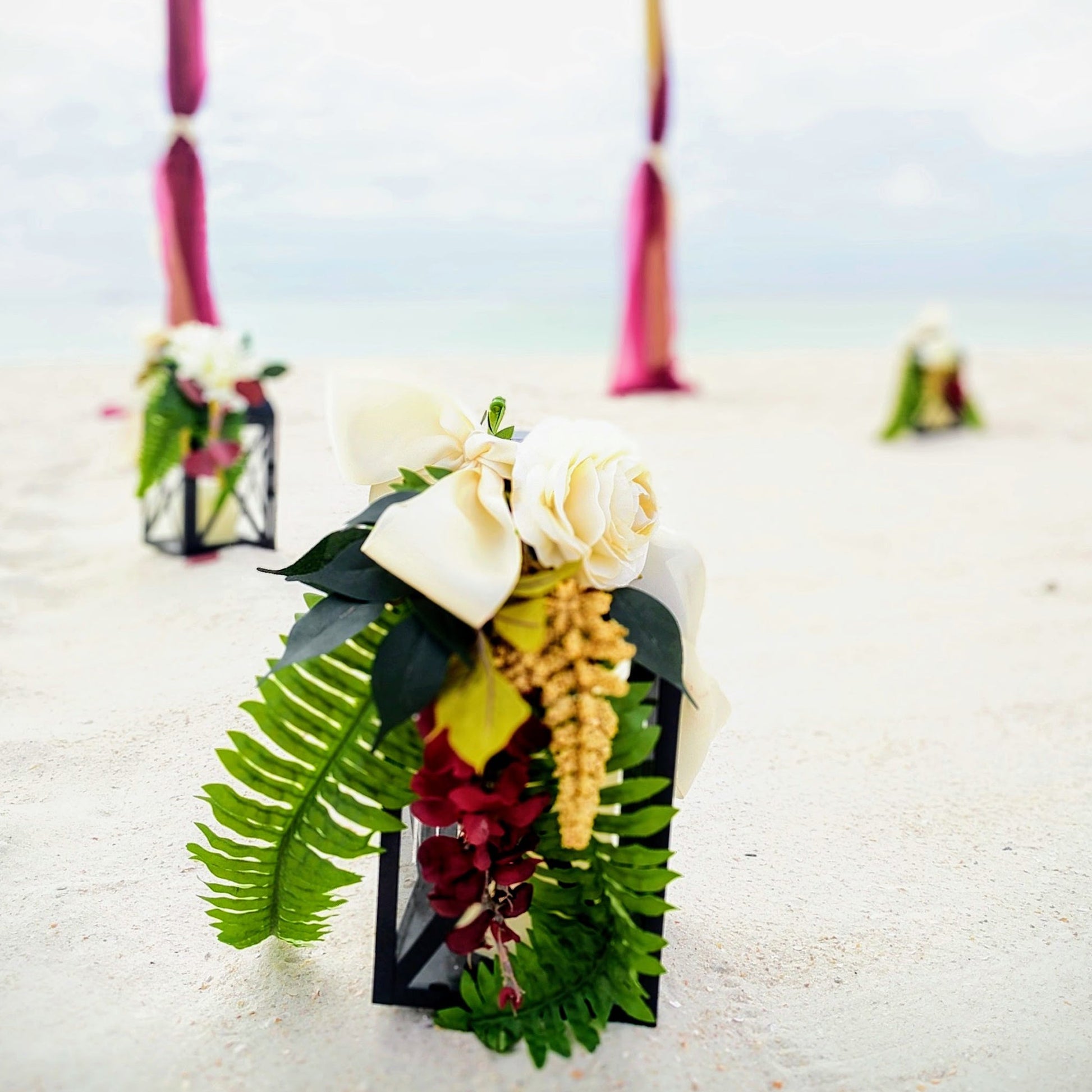 These black metal lanterns stand about 11 inches tall and are the perfect lantern for a beach wedding or park wedding aisle markers. Customize to your look with a faux flower topper. Fill with a candle, fairy lights, flowers, or shells for a perfectly beautiful day, or leave plain for a simple, classic look!