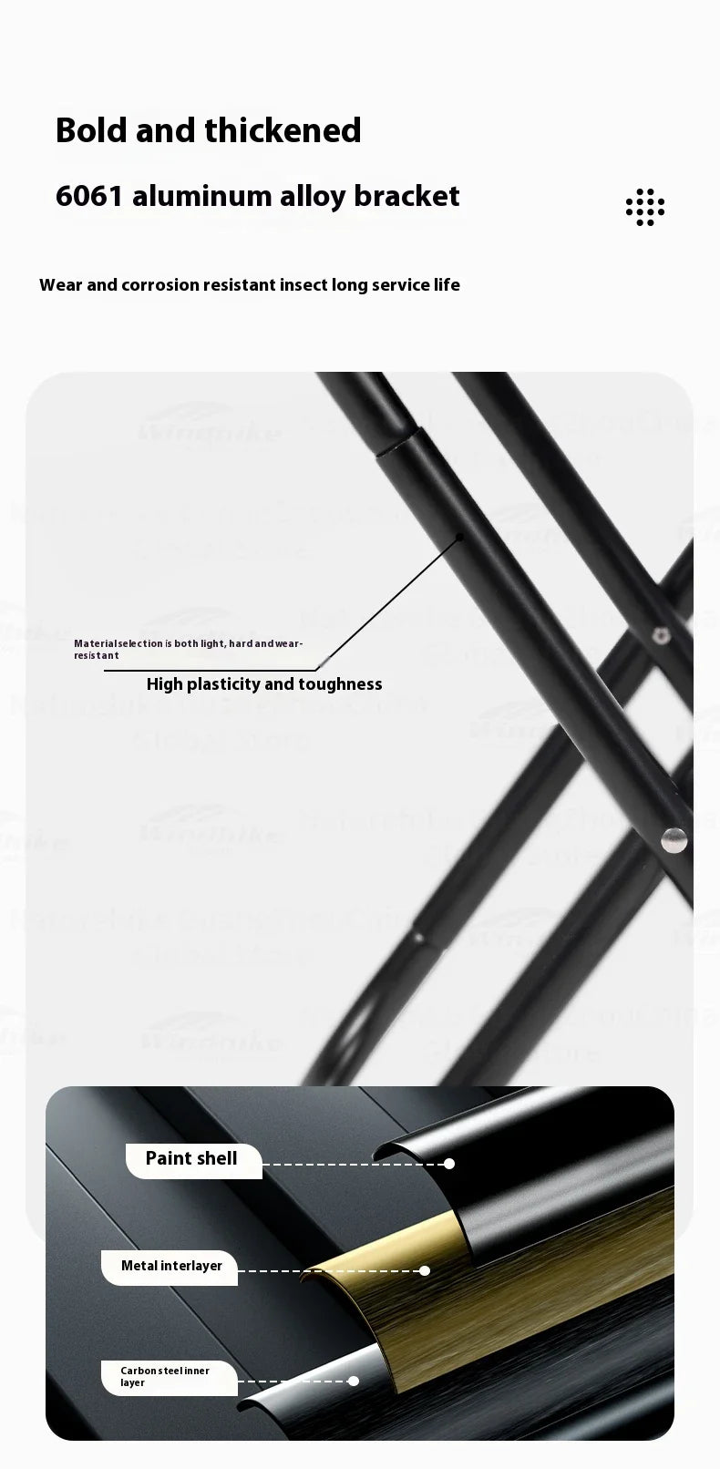 Material: 6061 Aluminum Alloy+600D Oxford Cloth+Pearl Cotton