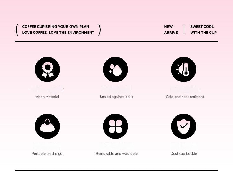 BLACKDOG Sweet & Cool Travel Cup Portable Lightweight Black Pink Tritan Water Bottle With Cap Hot And Cold Leak Proof On the Go Chain Handle