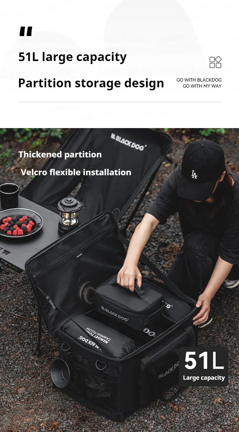 Blackdog Tactical Storage Bag Portable Foldable 51L Large Capacity Multifunctional Table Camp Gear Box Side Door Handbag Outdoor Camping Accessories 600D Oxford Cloth
