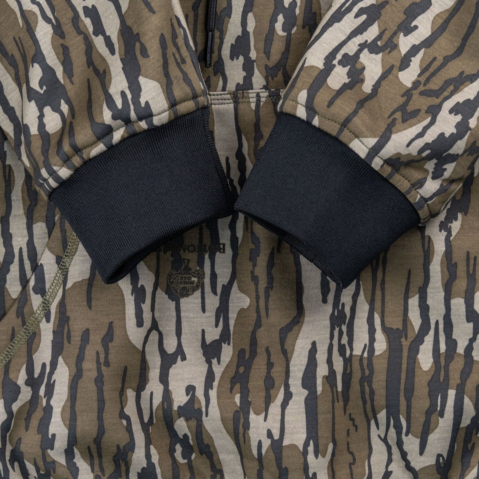 The Mobile Warming® Mossy Oak BLX Heated Hoodie is a classic pullover with it's low-noise Polyester outershell and DWR water resistant finish adds an extra layer of protection while keeping you concealed and comfortabel all day long. Classic contour hood with durable adjustable pull strings and front hand pockets make this hoodie the perfect solution whether your in the field or on the job. The Mobile Warming multi-zone heat system is powered by a 7.4volt rechargeable lithium-ion battery, delivering up to 10 hours of heat to 2 heat panels in the front and 1 in the back. Adjust between 4 temperature settings to customize your heat level and extend time between charges. The Mossy Oak Bottomland pattern, from Americas #1 Camo brand, is the perfect solution whether you're in the field or on the job. Bottomland is one of Mossy Oak's most popular camo patterns, the go-to pattern for gamekeepers in and out of the woods - whether in season or in the dirt 12 months of the year. It conceals and conserves through it's Official Camouflage Status from Ducks Unlimited and NWFT.
