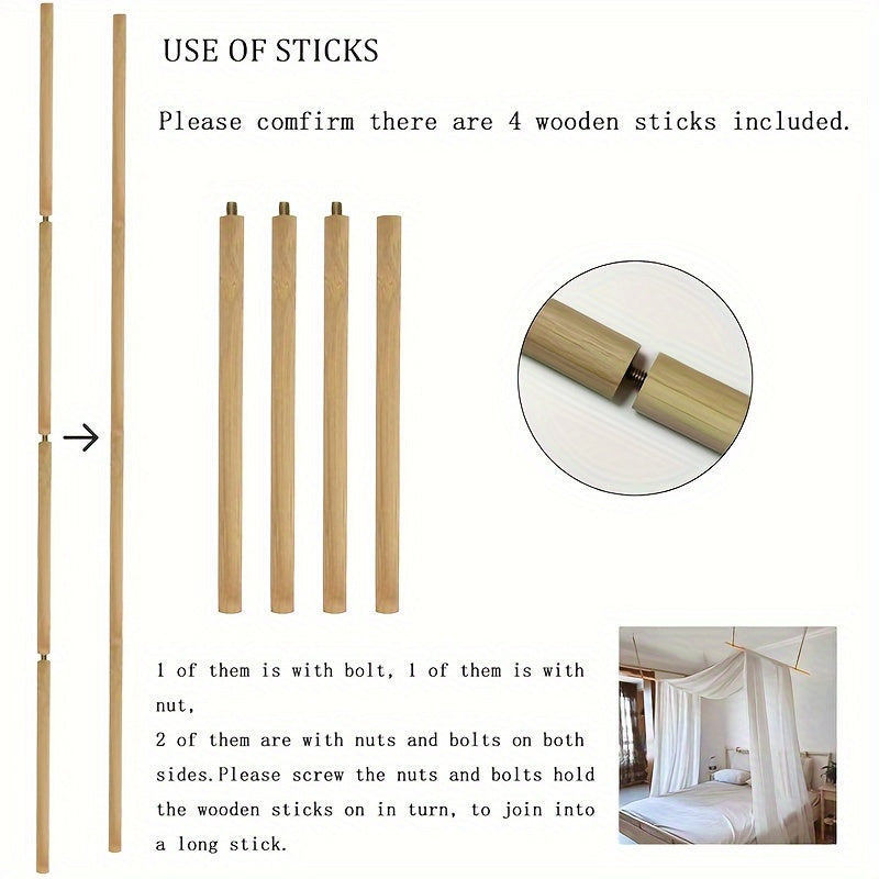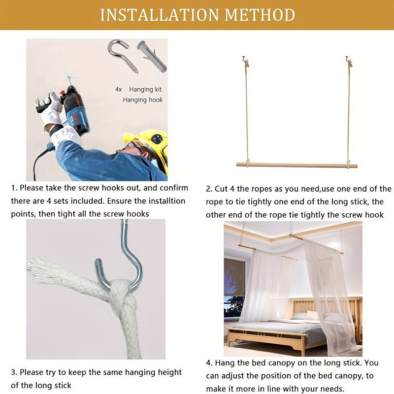 Includes four hooks and two rods for effortless installation. The canopy can be easily suspended above your bed, providing a hassle-free setup experience.