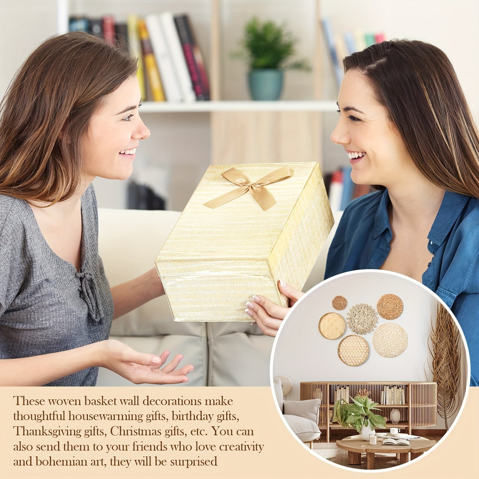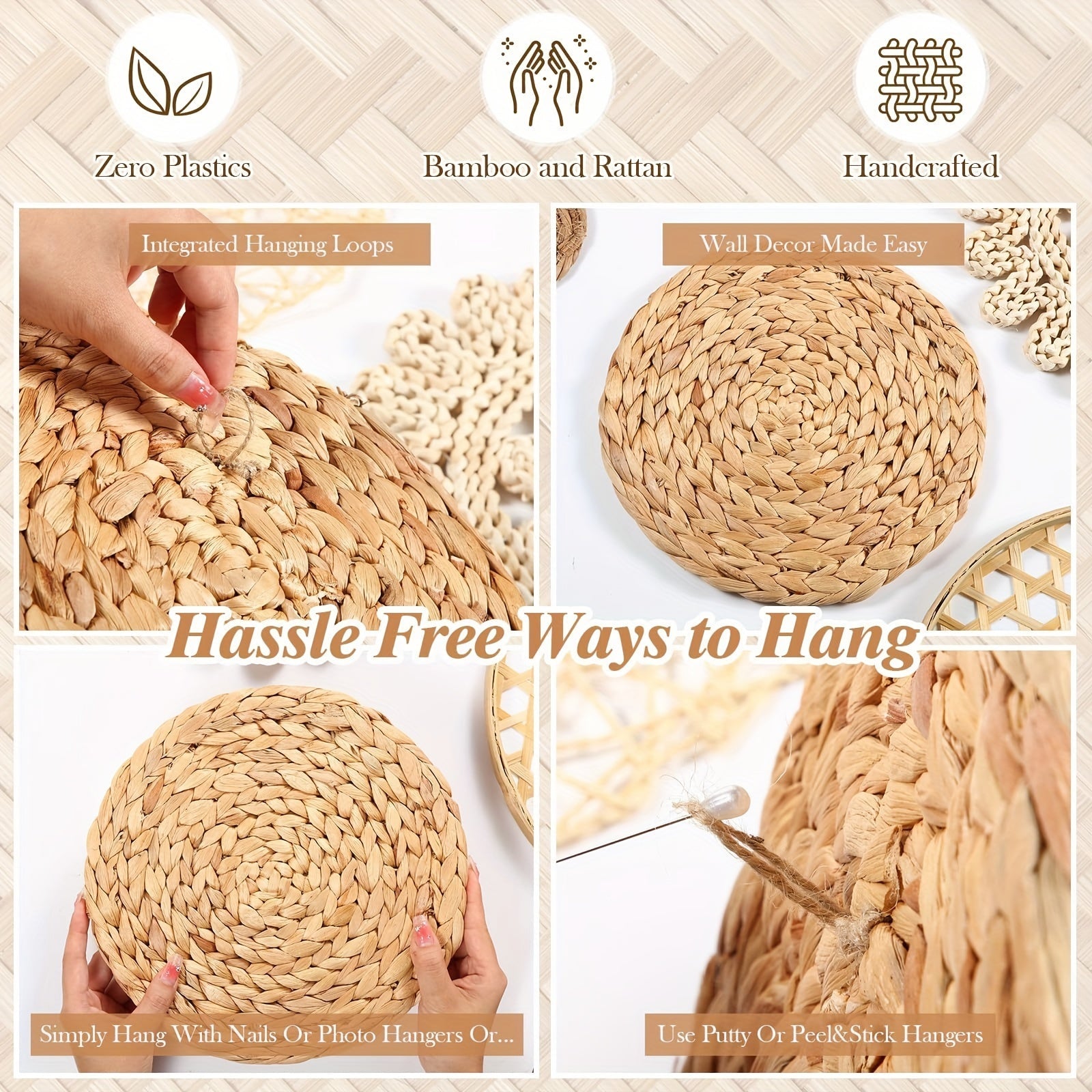 Boho Style 7-Piece Handmade Woven Seagrass Rattan Wall Decor - CDV0