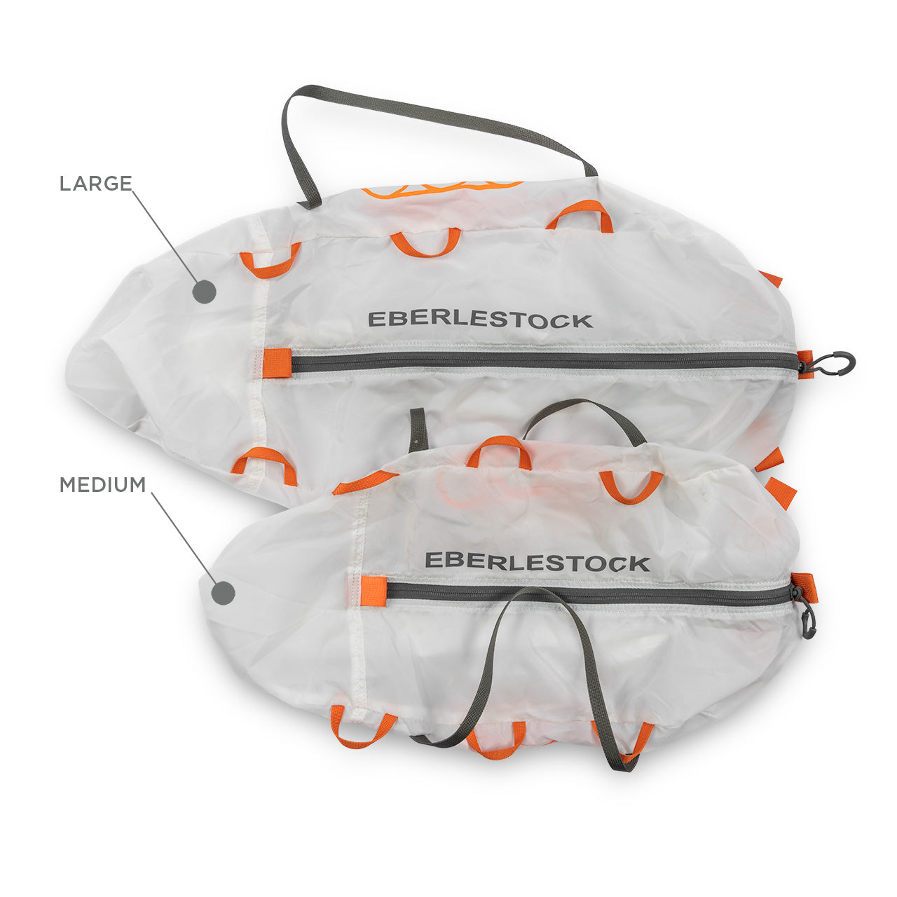 The Eberlestock Boned Out Game Bags are available in two sizes. Both the medium and large are designed to fit perfectly between the frame and your pack.