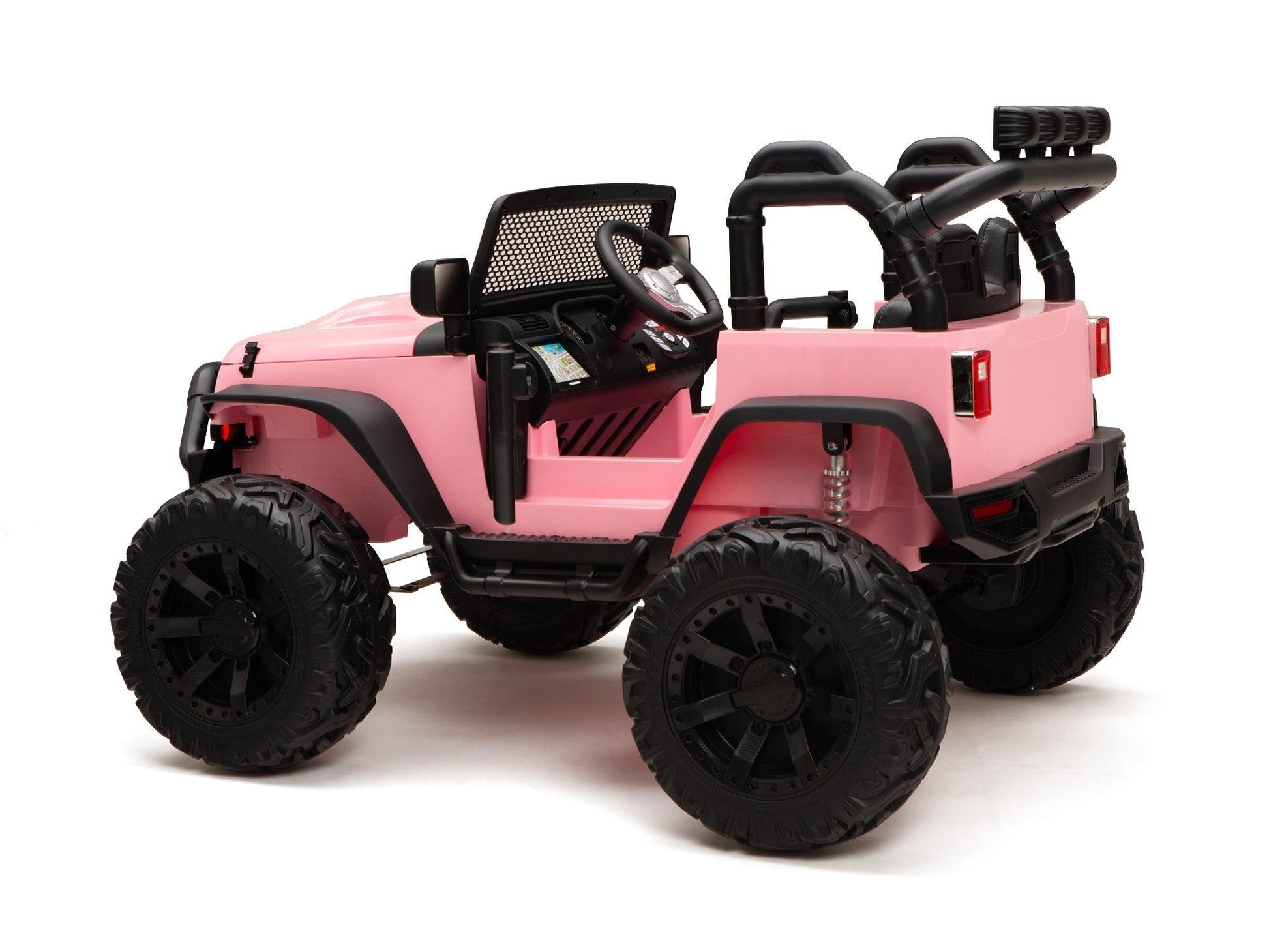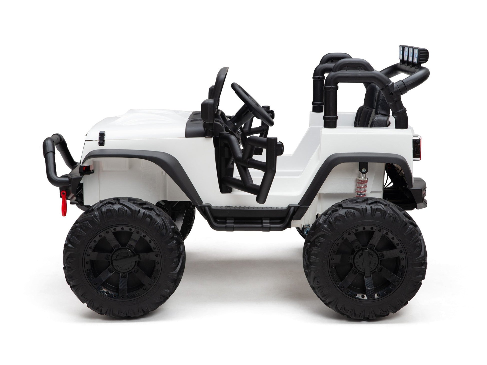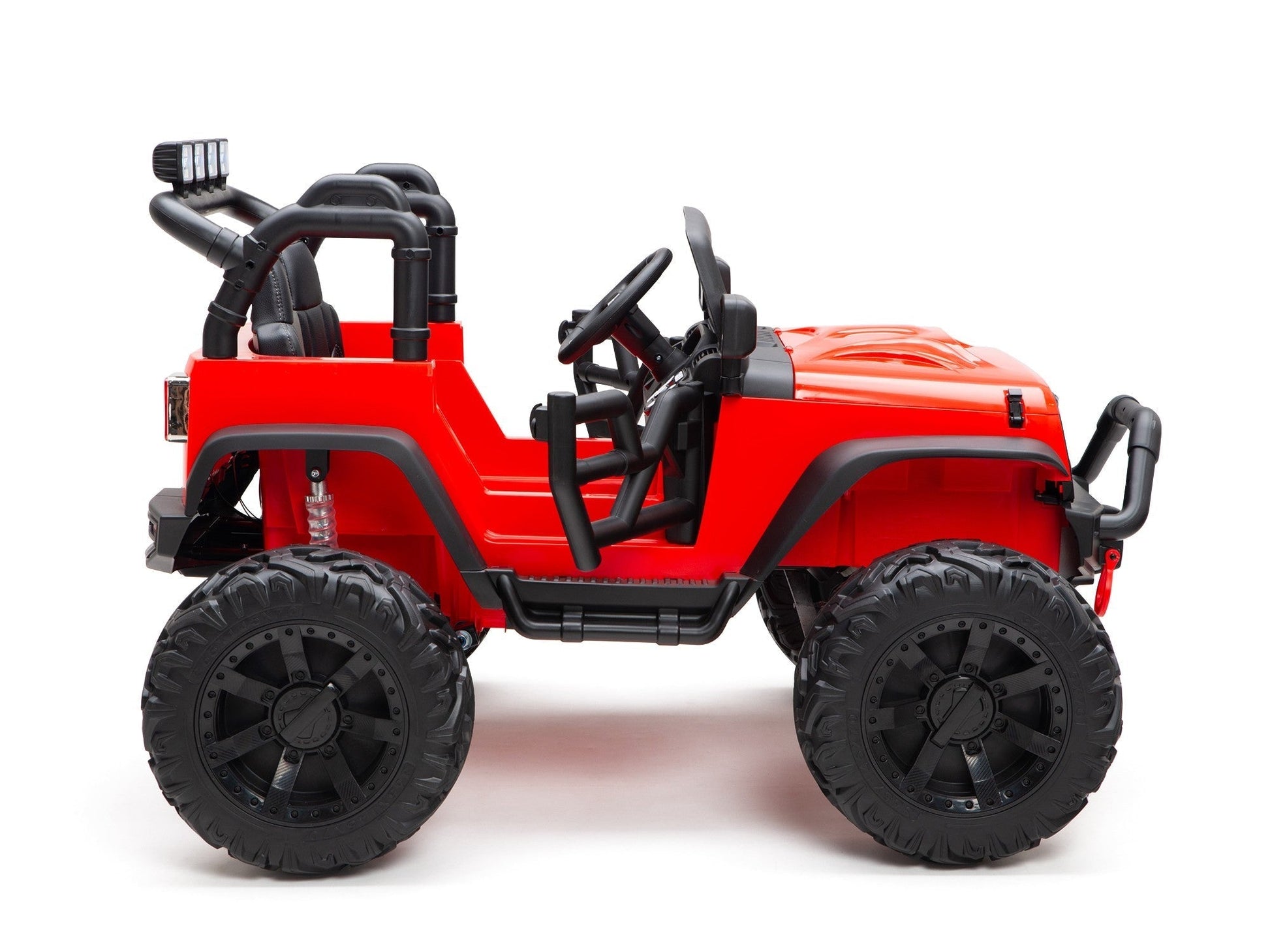 Experience the ultimate thrill with the Magic Cars BOOM BOOM The BUFFALO Children's Off-Road Kids Car, a 24V 4X4 ride-on toy that features 2 seats and parental remote control for added safety. As an expert in the industry, we guarantee durability and sturdiness with real rubber tires and a leather seat. With dual motors and a 24V battery, this vehicle can reach speeds of up to 6.5 mph, perfect for adventurous children between 3-8 years old. And to top it off, it even has a working stereo and horn to add to the excitement. Join the millions of fans of Boom Boom the Buffalo and give your child the perfect present that will last for years to come.