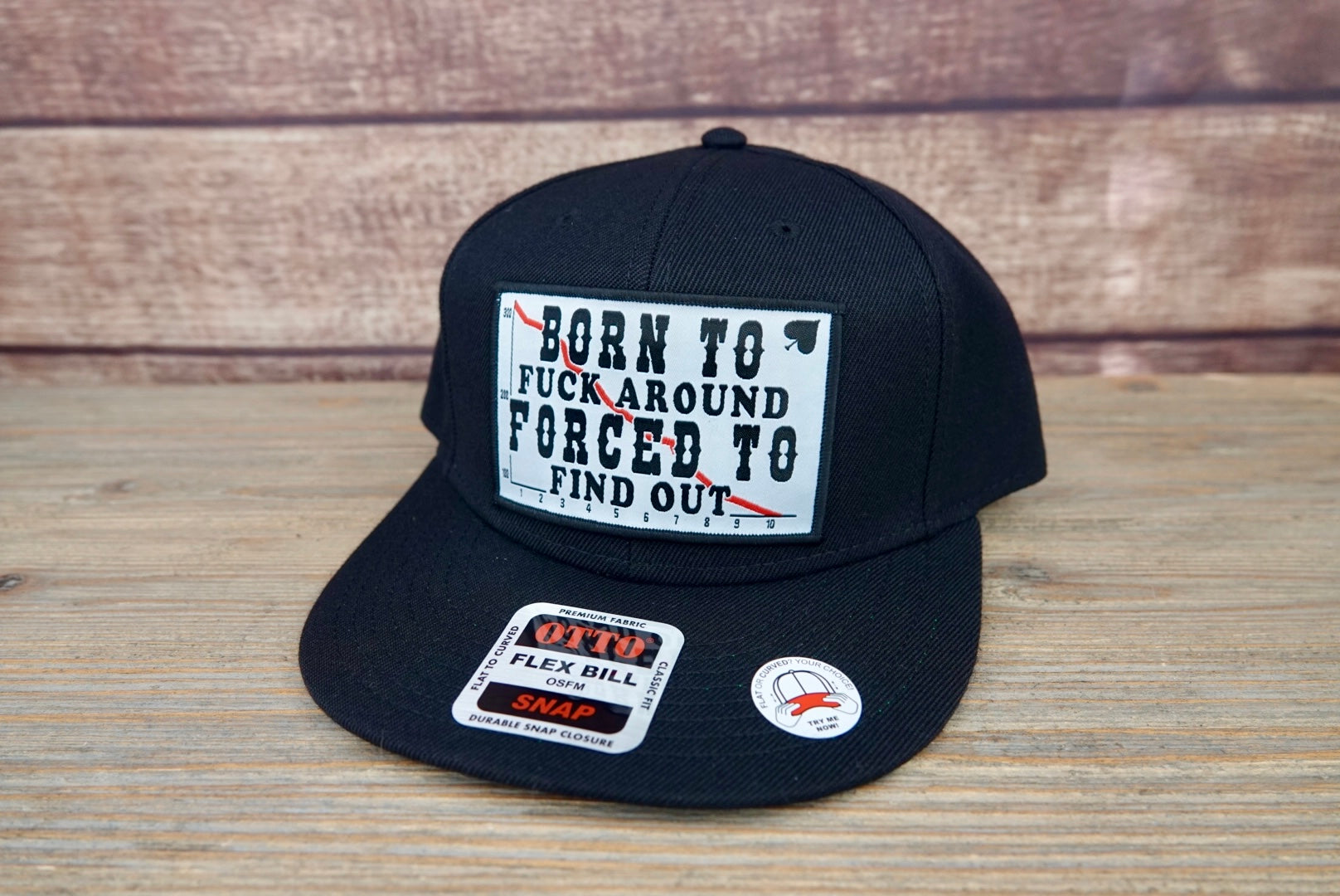 This Born to FA Forced to FO patched hat is made for the bold. Show off your unapologetically fearless style with this unique accessory. Perfect for those who are not afraid to forge their own path and break societal norms. Stand out and make a statement with this one-of-a-kind hat.